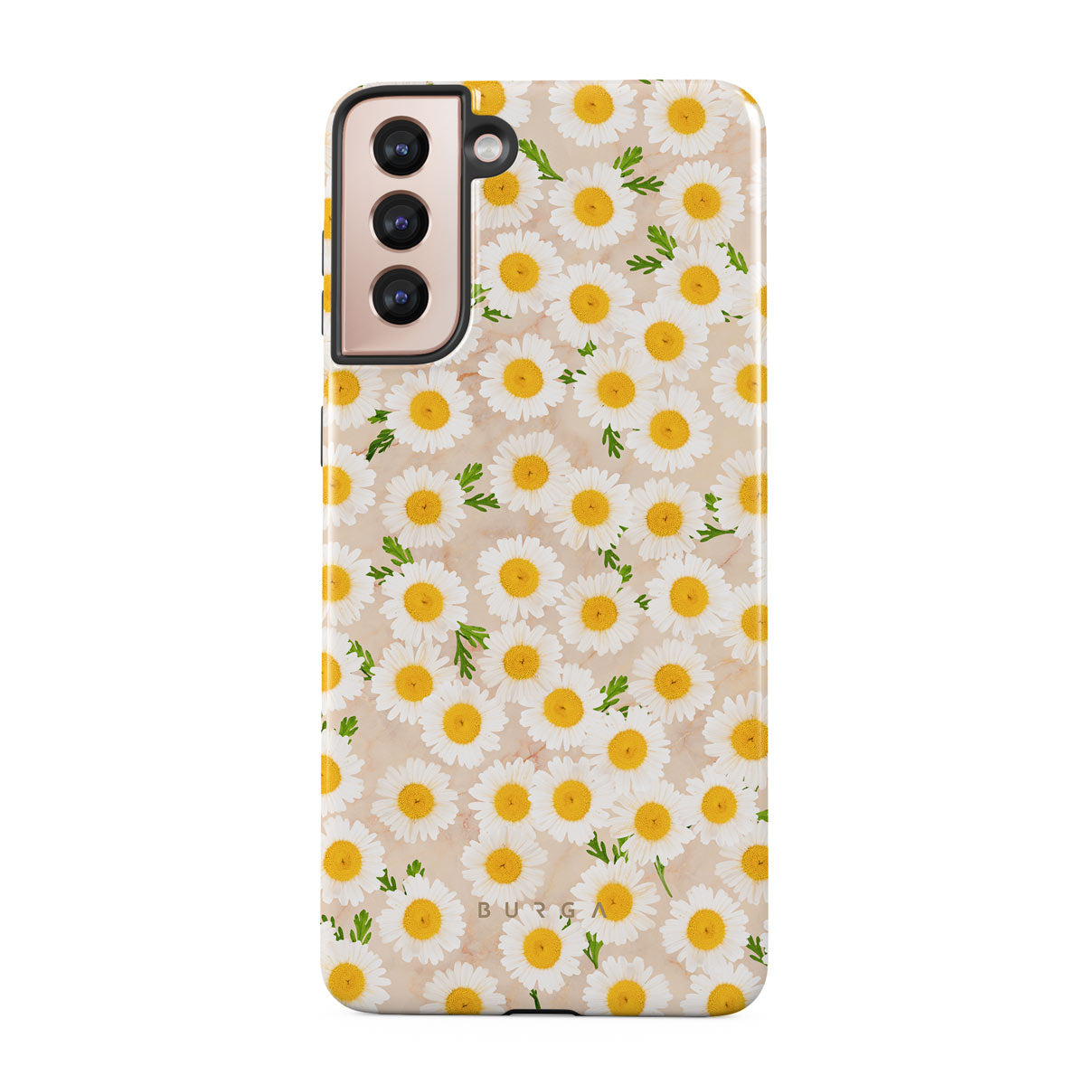 The smell of the Daisies surrounding you, memories of "Loves me, loves me not," and the smile it gives you. Feel free to look, to smell. Take this blissful moment with your daisy inspired Samsung Galaxy S21 Plus phone case whenever you need a little relaxation or when you want to simply enjoy the moment while protecting your phone.