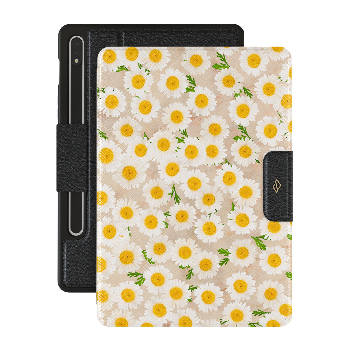 The smell of the Daisies surrounding you, memories of "Loves me, loves me not," and the smile it gives you. Feel free to look, to smell. Take this blissful moment with your daisy inspired Samsung Galaxy Tab S8+/S7+/S7 FE folio case whenever you need a little relaxation or when you want to simply enjoy the moment while protecting your Galaxy Tab.
