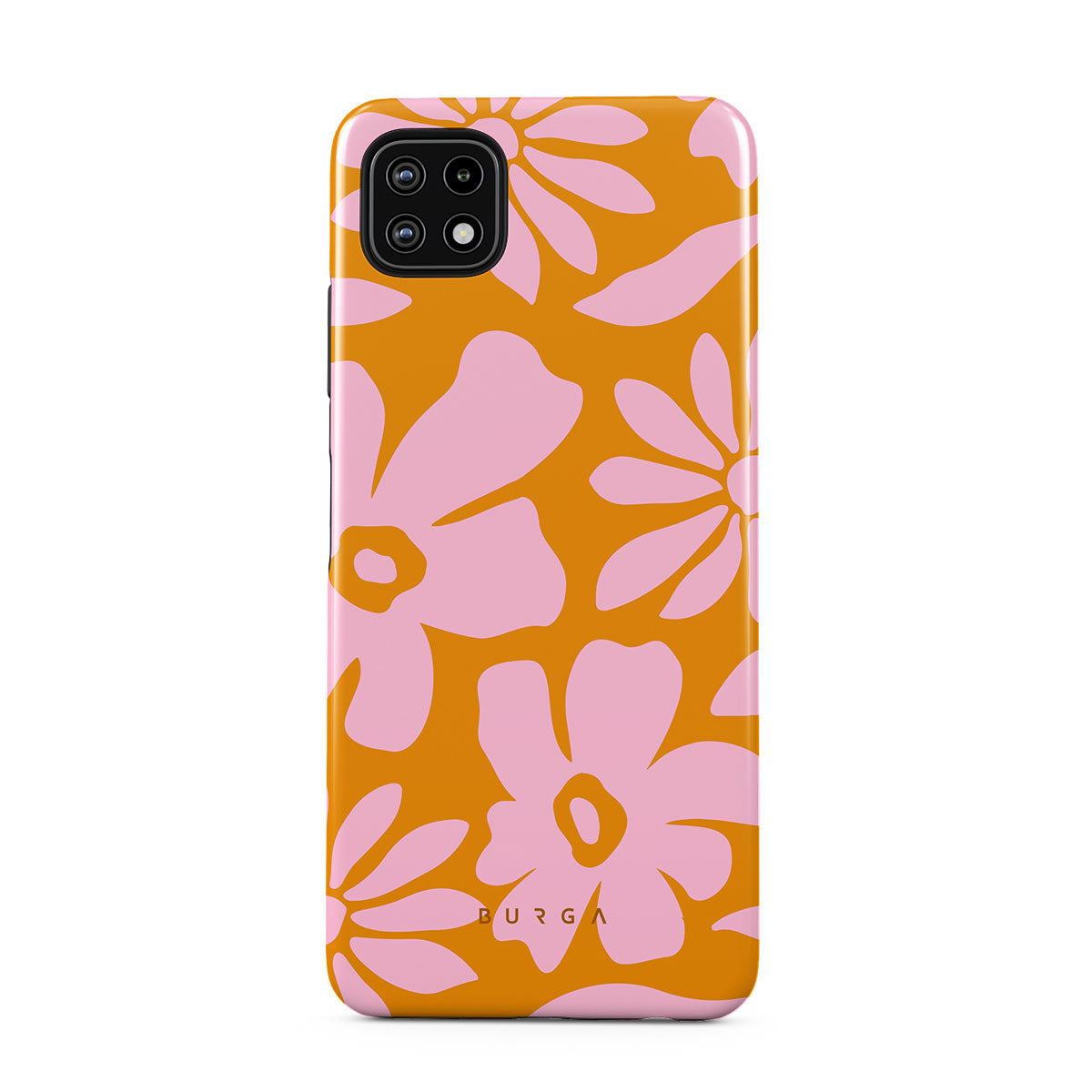 Step into a world of vibrant celebration with our Daytime Fiesta. Delicate pastel pink flowers dance against a backdrop of electrifying orange, creating a captivating fusion of color. Embrace the positive energy of this beautiful design and let your Samsung Galaxy A22 5G phone case radiate the spirit of a lively fiesta wherever you go.
