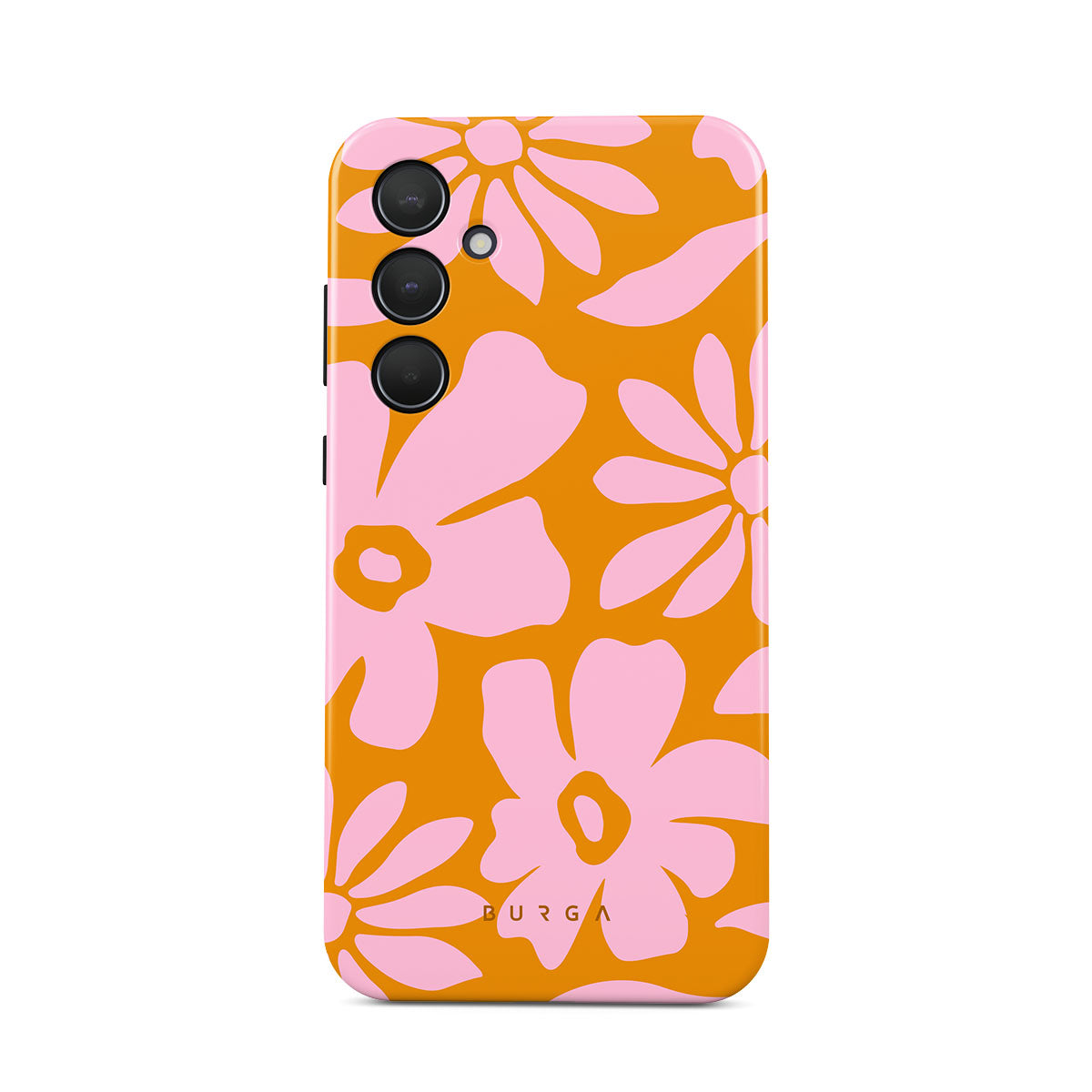 Step into a world of vibrant celebration with our Daytime Fiesta. Delicate pastel pink flowers dance against a backdrop of electrifying orange, creating a captivating fusion of color. Embrace the positive energy of this beautiful design and let your Samsung Galaxy A35 phone case radiate the spirit of a lively fiesta wherever you go.