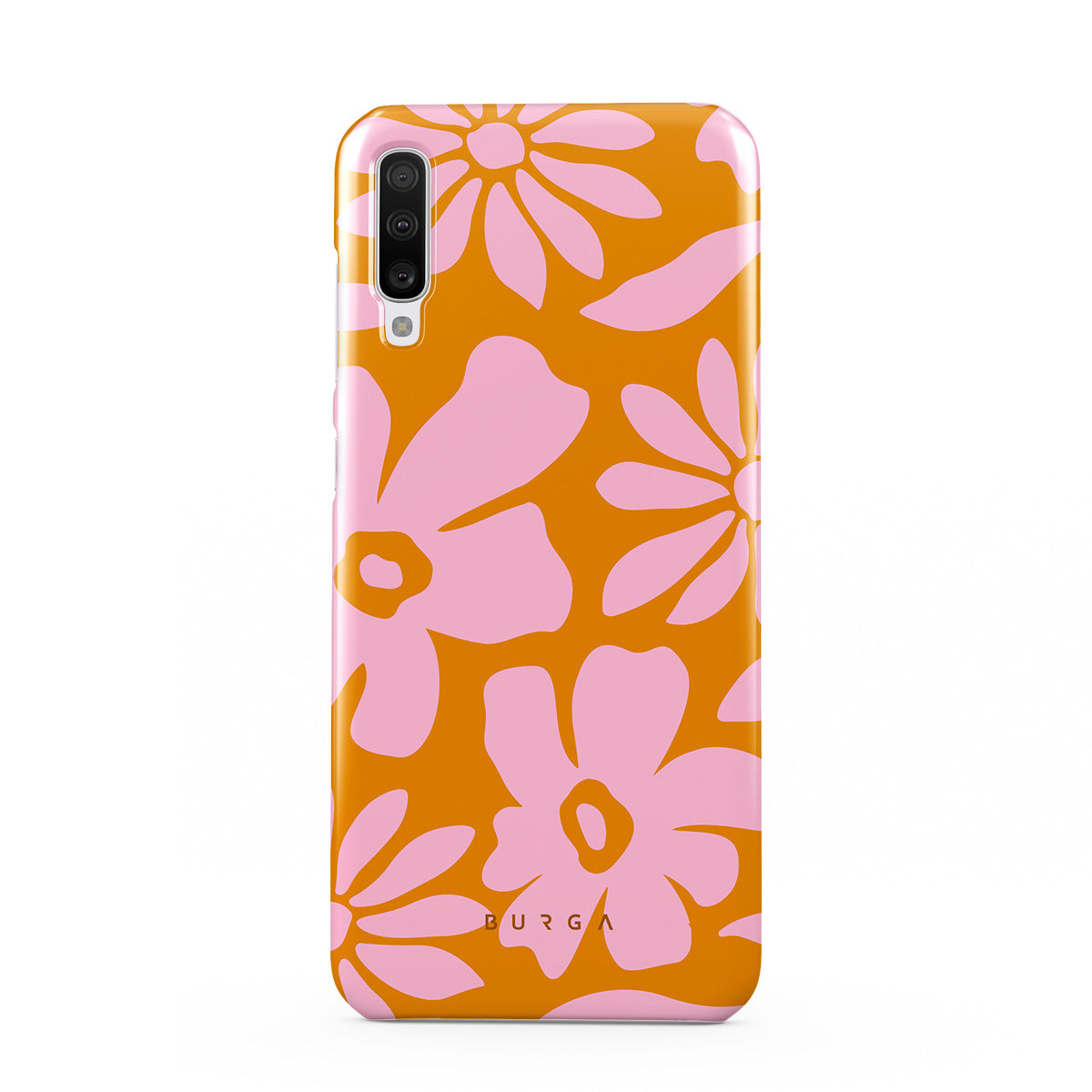 Step into a world of vibrant celebration with our Daytime Fiesta. Delicate pastel pink flowers dance against a backdrop of electrifying orange, creating a captivating fusion of color. Embrace the positive energy of this beautiful design and let your Samsung Galaxy A70 phone case radiate the spirit of a lively fiesta wherever you go.