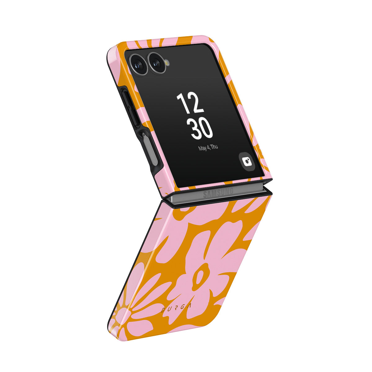 Step into a world of vibrant celebration with our Daytime Fiesta. Delicate pastel pink flowers dance against a backdrop of electrifying orange, creating a captivating fusion of color. Embrace the positive energy of this beautiful design and let your Samsung Galaxy Z Flip 7 phone case radiate the spirit of a lively fiesta wherever you go.
