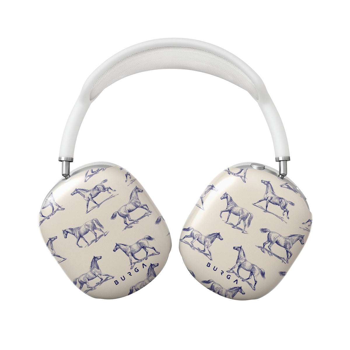 Introducing our Derby Race Apple AirPods Max case cover designa portrait of elegance in motion on a soft nude canvas. Engraved in delicate blue contours, galloping horses dance upon the wind, frozen in an exquisite moment of grace.