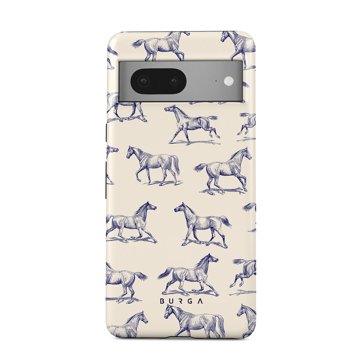 Introducing our Derby Race Google Pixel 7a phone case designa portrait of elegance in motion on a soft nude canvas. Engraved in delicate blue contours, galloping horses dance upon the wind, frozen in an exquisite moment of grace.