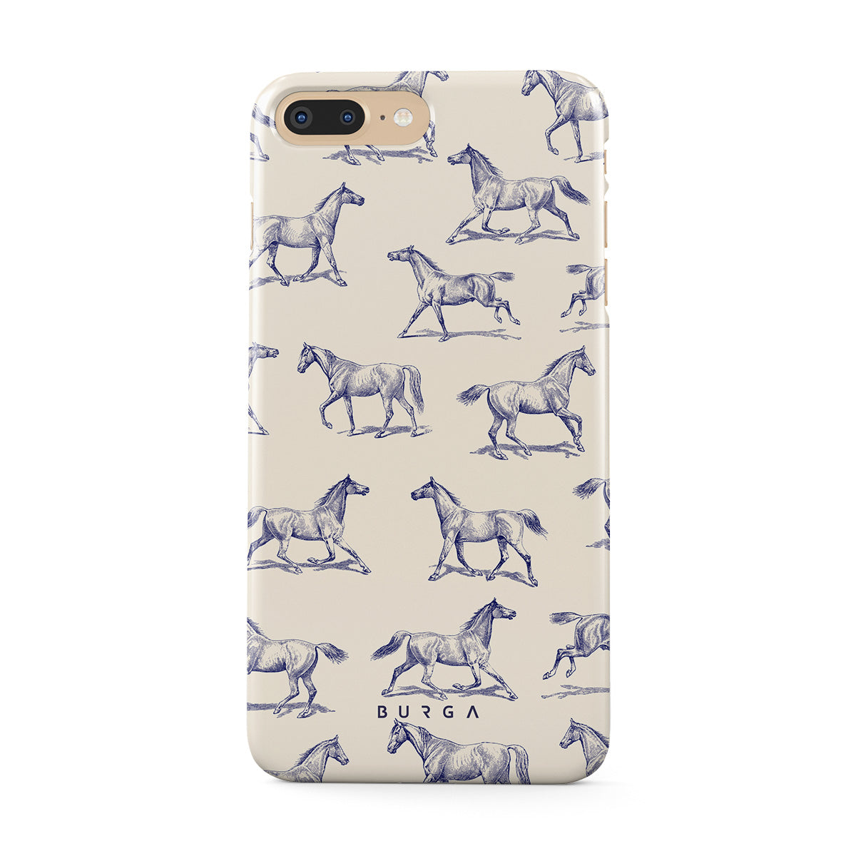 Introducing our Derby Race iPhone 7 Plus / 8 Plus phone case designa portrait of elegance in motion on a soft nude canvas. Engraved in delicate blue contours, galloping horses dance upon the wind, frozen in an exquisite moment of grace.