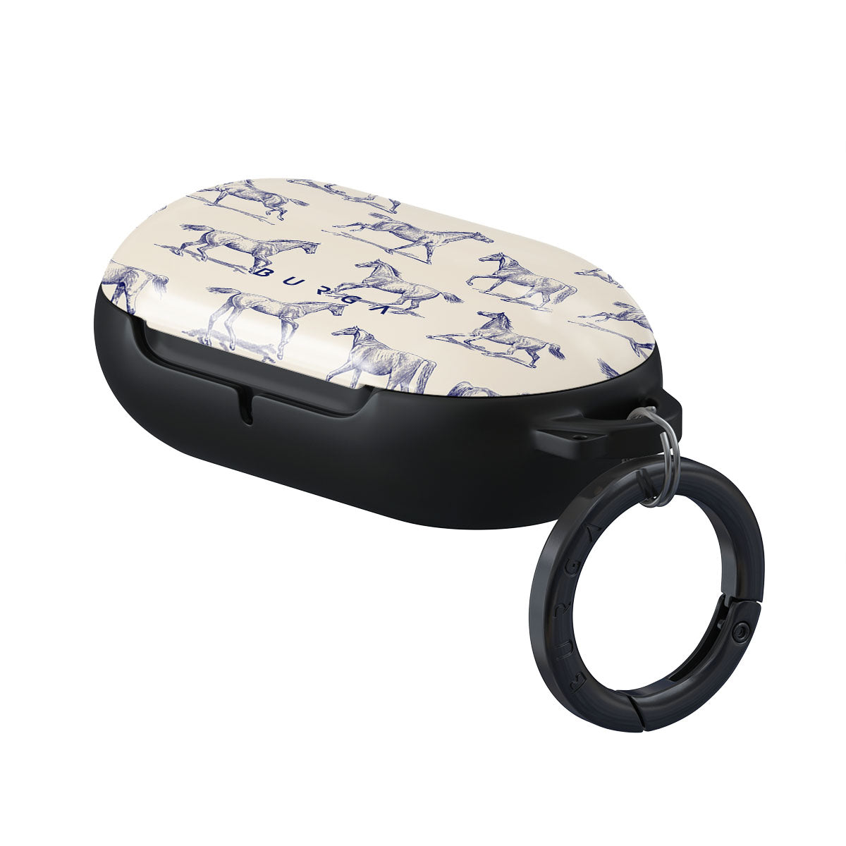 Introducing our Derby Race Samsung Galaxy Buds Plus case cover designa portrait of elegance in motion on a soft nude canvas. Engraved in delicate blue contours, galloping horses dance upon the wind, frozen in an exquisite moment of grace.