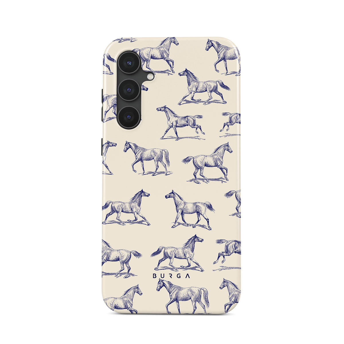Introducing our Derby Race Samsung Galaxy S23 FE phone case design—a portrait of elegance in motion on a soft nude canvas. Engraved in delicate blue contours, galloping horses dance upon the wind, frozen in an exquisite moment of grace.