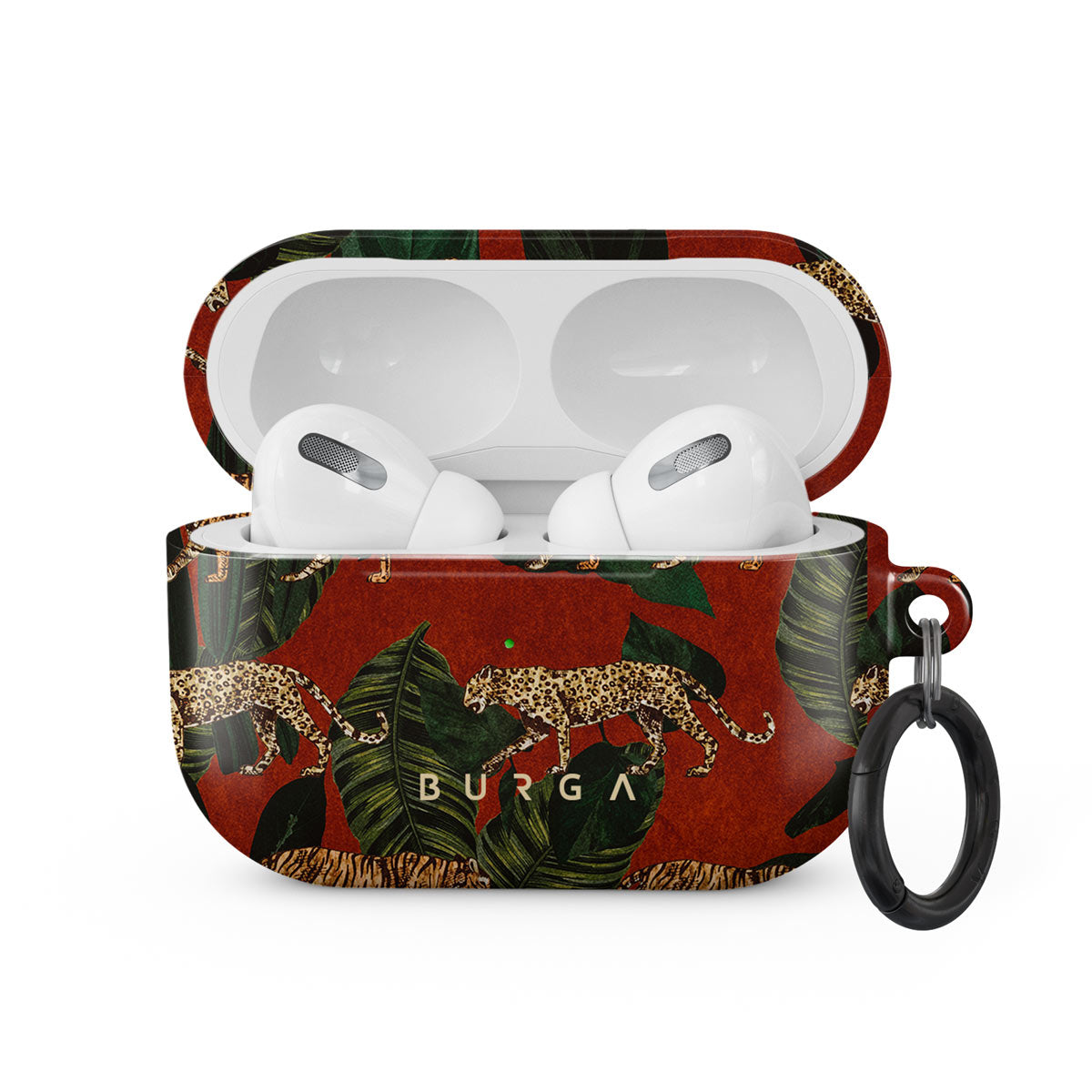 Our case fits perfectly snug around Apple Airpods Pro . “Like a glove!” one might say. And it won’t disrupt the wireless charging capabilities of the newer model. There’s even an LED light indicator to prove it (don’t worry, wired charging still works, too). When fitted, the BURGA case will protect the delicate Apple Airpods Pro case beneath it from scratches, bumps, and drops while remaining scratch-free itself. Our signature design pattern prints are High Quality, and will never peel or fade away- thanks to our unique printing technology. And finally, a handy carabiner is there to make your life easier and more convenient: just snap it around your keys or belt loop and tackle the day head-on. Your music is right there by your side when you need it.