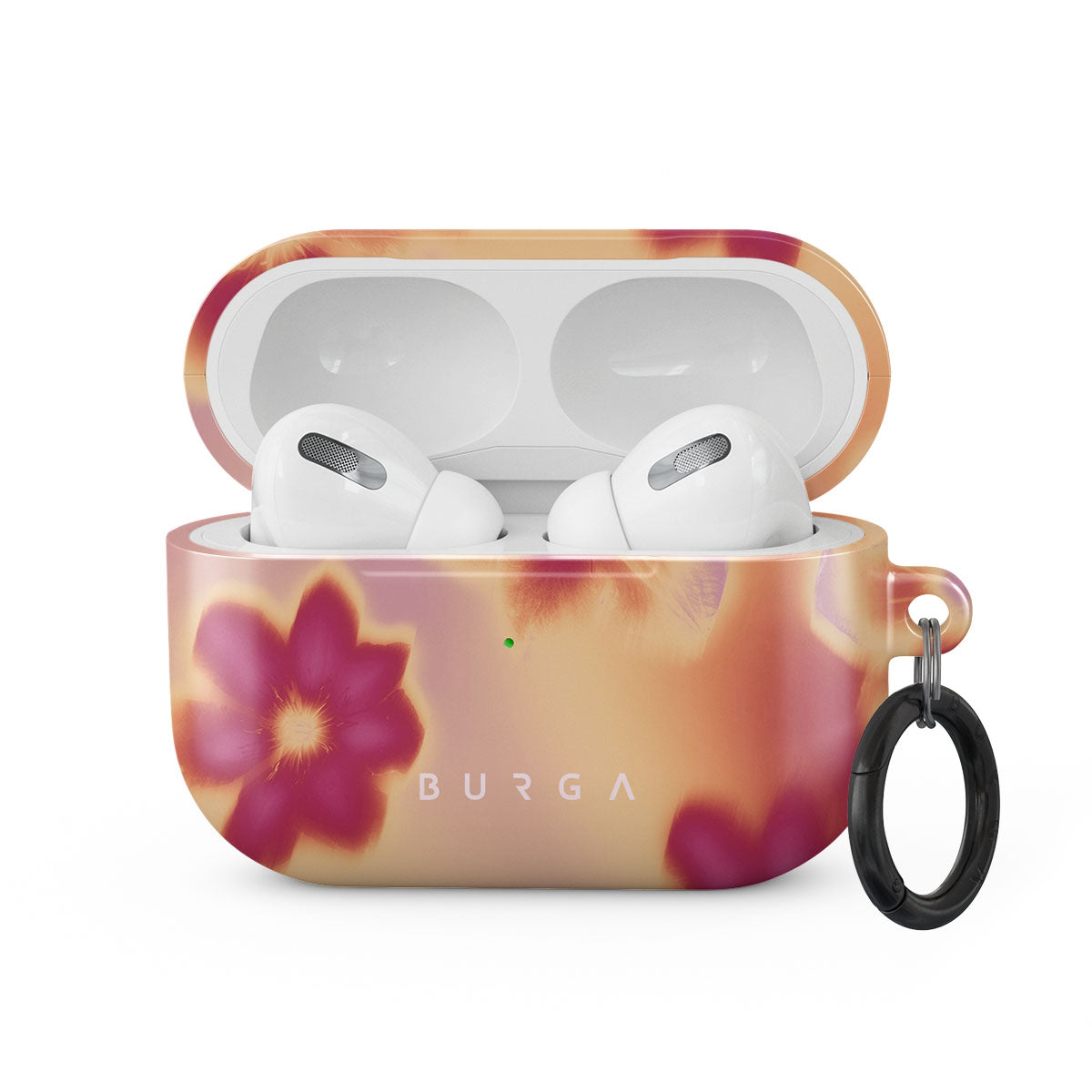 Get lost in the allure of our Divine Apple Airpods Pro case cover design. Picture blossoms bathed in fiery hues of pink and orange, each seemingly charged with life's raw energy. Set against a canvas that radiates power and warmth, these flowers offer more than just beauty; they resonate with the essence that binds us all.