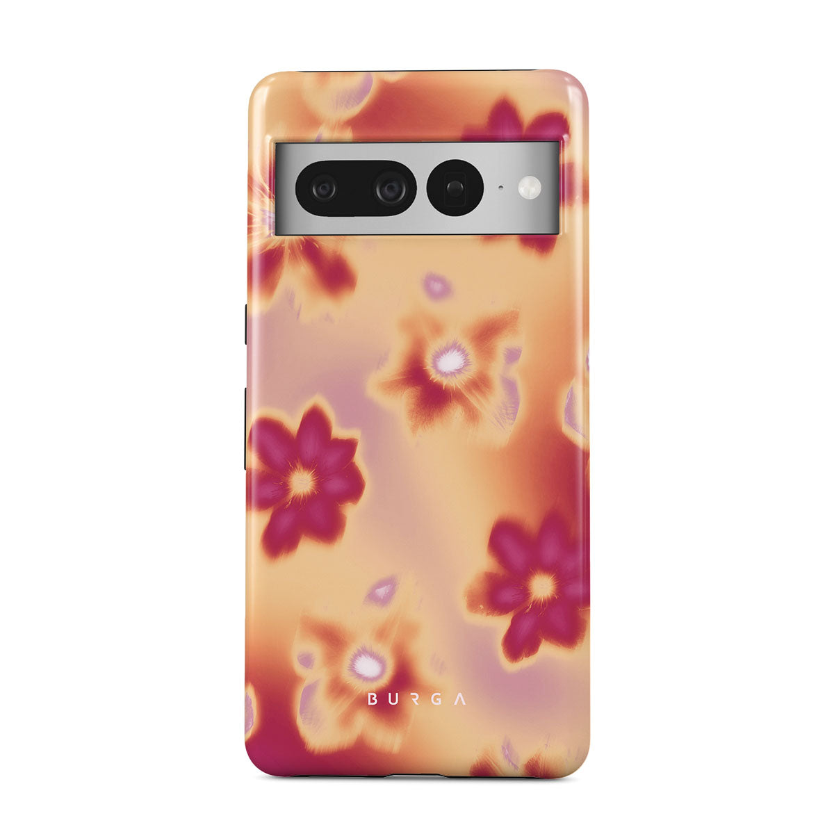 Get lost in the allure of our Divine Google Pixel 7 Pro phone case design. Picture blossoms bathed in fiery hues of pink and orange, each seemingly charged with life's raw energy. Set against a canvas that radiates power and warmth, these flowers offer more than just beauty; they resonate with the essence that binds us all.