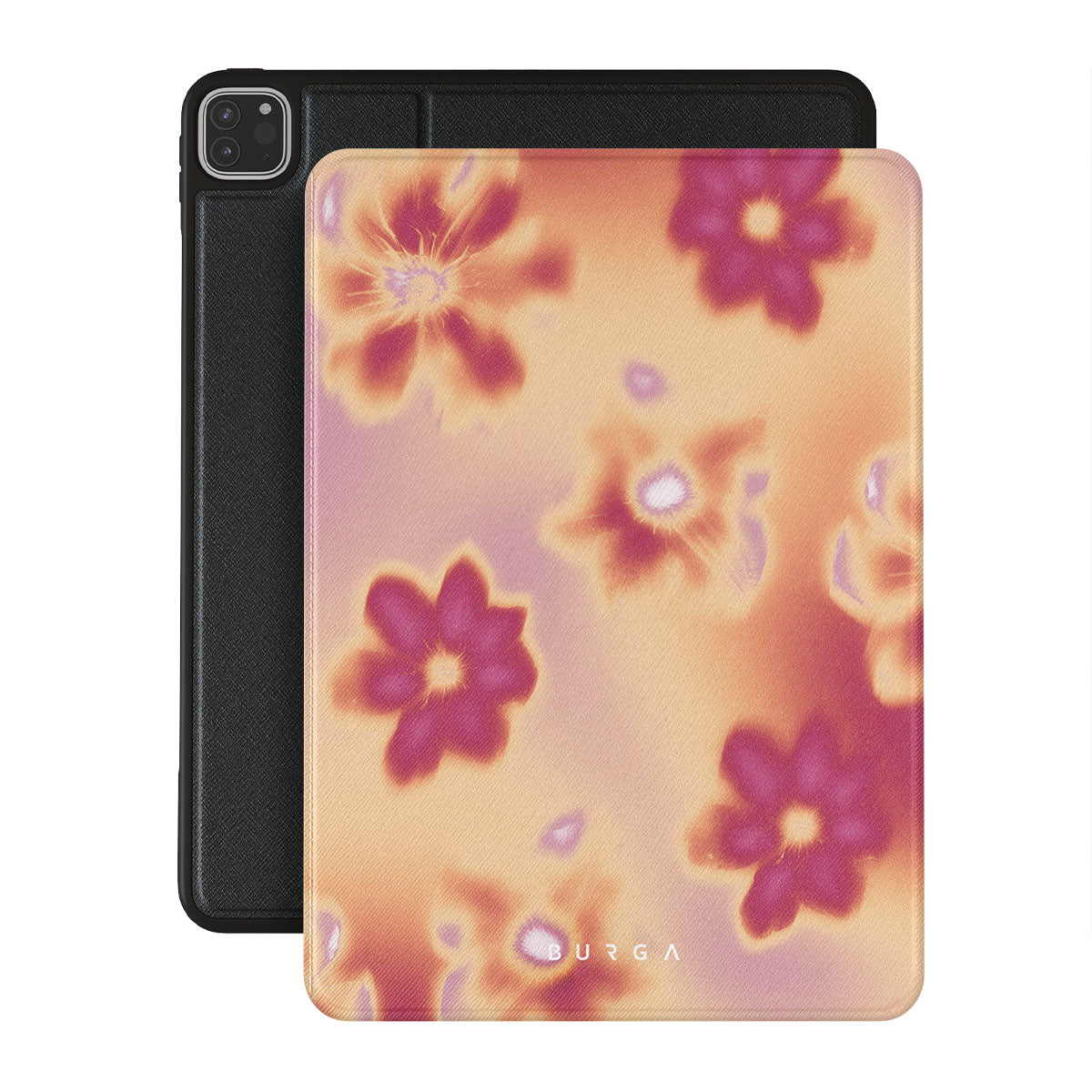 Get lost in the allure of our Divine folio case design. Picture blossoms bathed in fiery hues of pink and orange, each seemingly charged with life's raw energy. Set against a canvas that radiates power and warmth, these flowers offer more than just beauty; they resonate with the essence that binds us all.