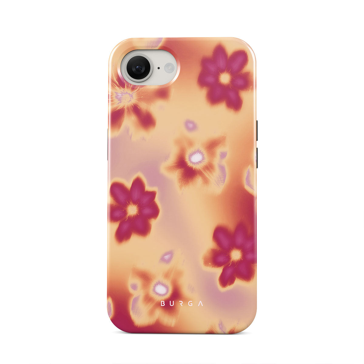 Get lost in the allure of our Divine iPhone 16e phone case design. Picture blossoms bathed in fiery hues of pink and orange, each seemingly charged with life's raw energy. Set against a canvas that radiates power and warmth, these flowers offer more than just beauty; they resonate with the essence that binds us all.