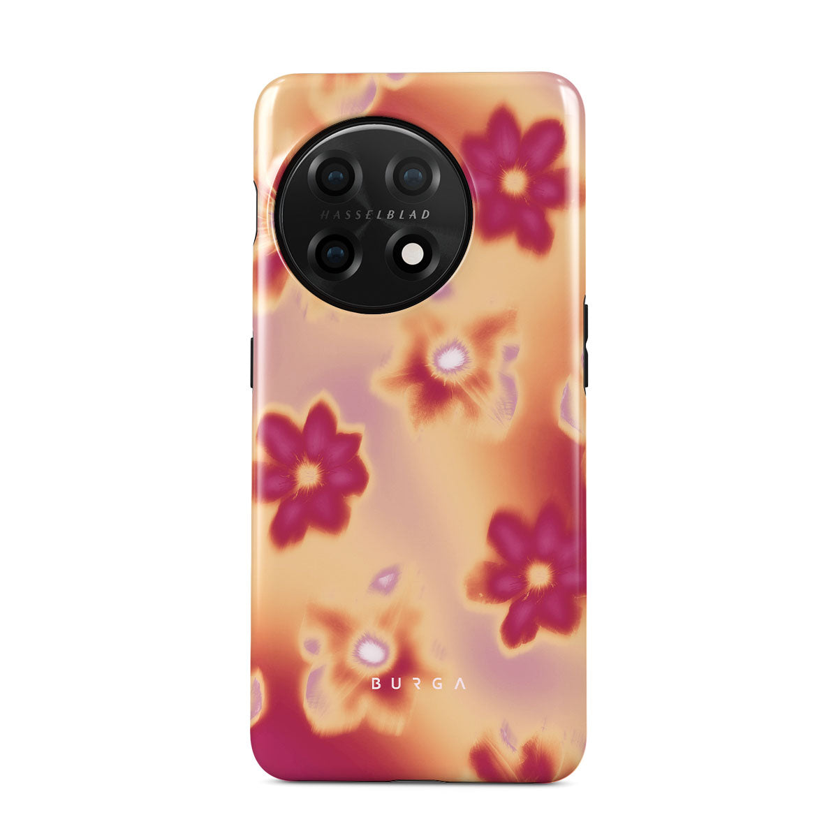 Get lost in the allure of our Divine OnePlus 11 phone case design. Picture blossoms bathed in fiery hues of pink and orange, each seemingly charged with life's raw energy. Set against a canvas that radiates power and warmth, these flowers offer more than just beauty; they resonate with the essence that binds us all.