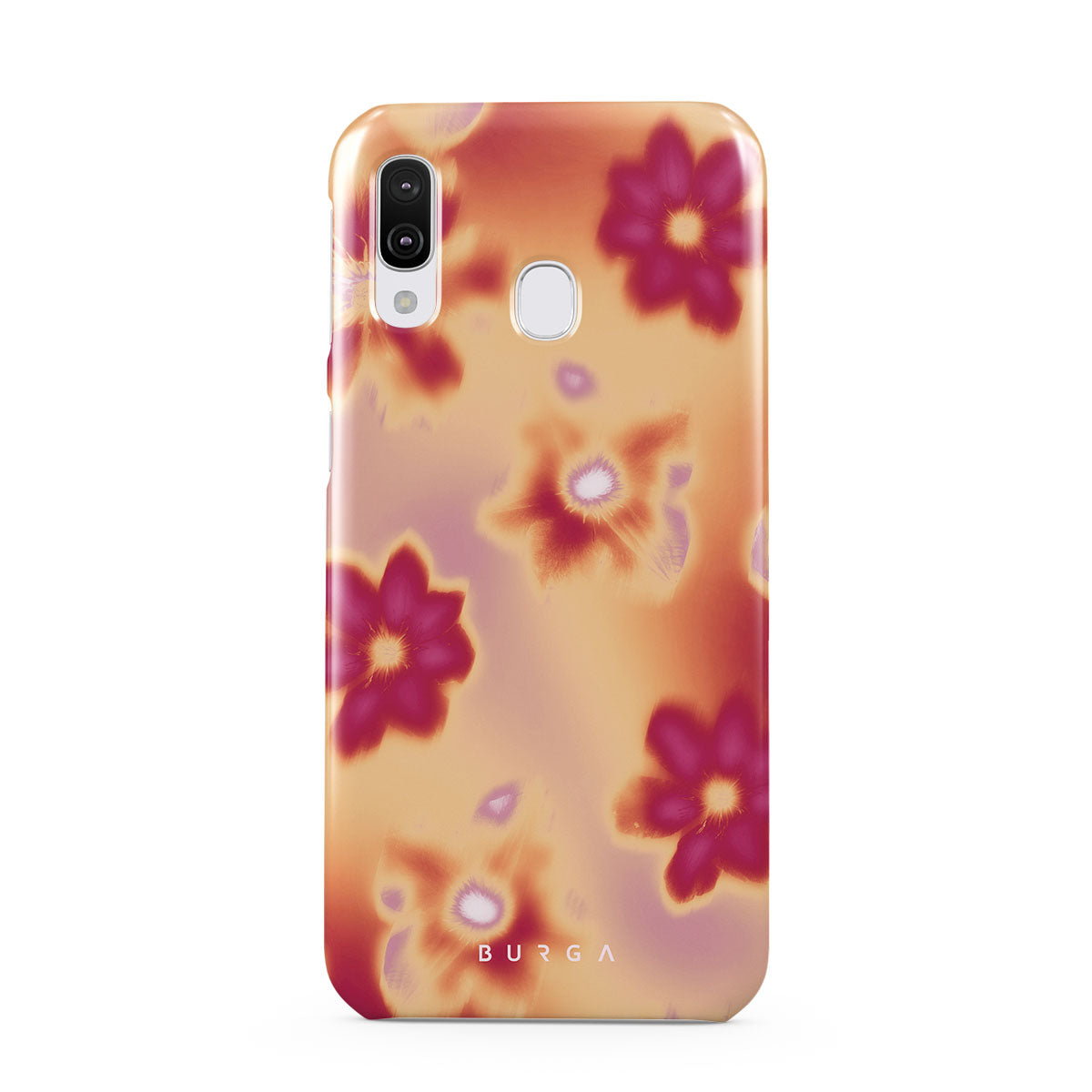 Get lost in the allure of our Divine Samsung Galaxy A40 phone case design. Picture blossoms bathed in fiery hues of pink and orange, each seemingly charged with life's raw energy. Set against a canvas that radiates power and warmth, these flowers offer more than just beauty; they resonate with the essence that binds us all.