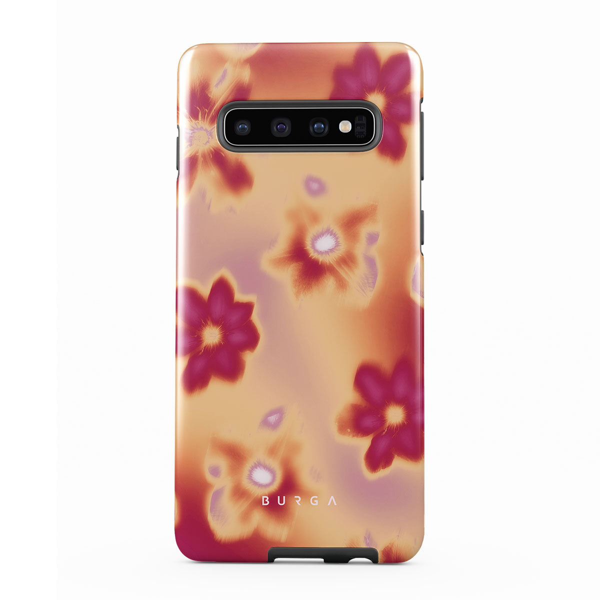 Get lost in the allure of our Divine Samsung Galaxy S10 4G phone case design. Picture blossoms bathed in fiery hues of pink and orange, each seemingly charged with life's raw energy. Set against a canvas that radiates power and warmth, these flowers offer more than just beauty; they resonate with the essence that binds us all.