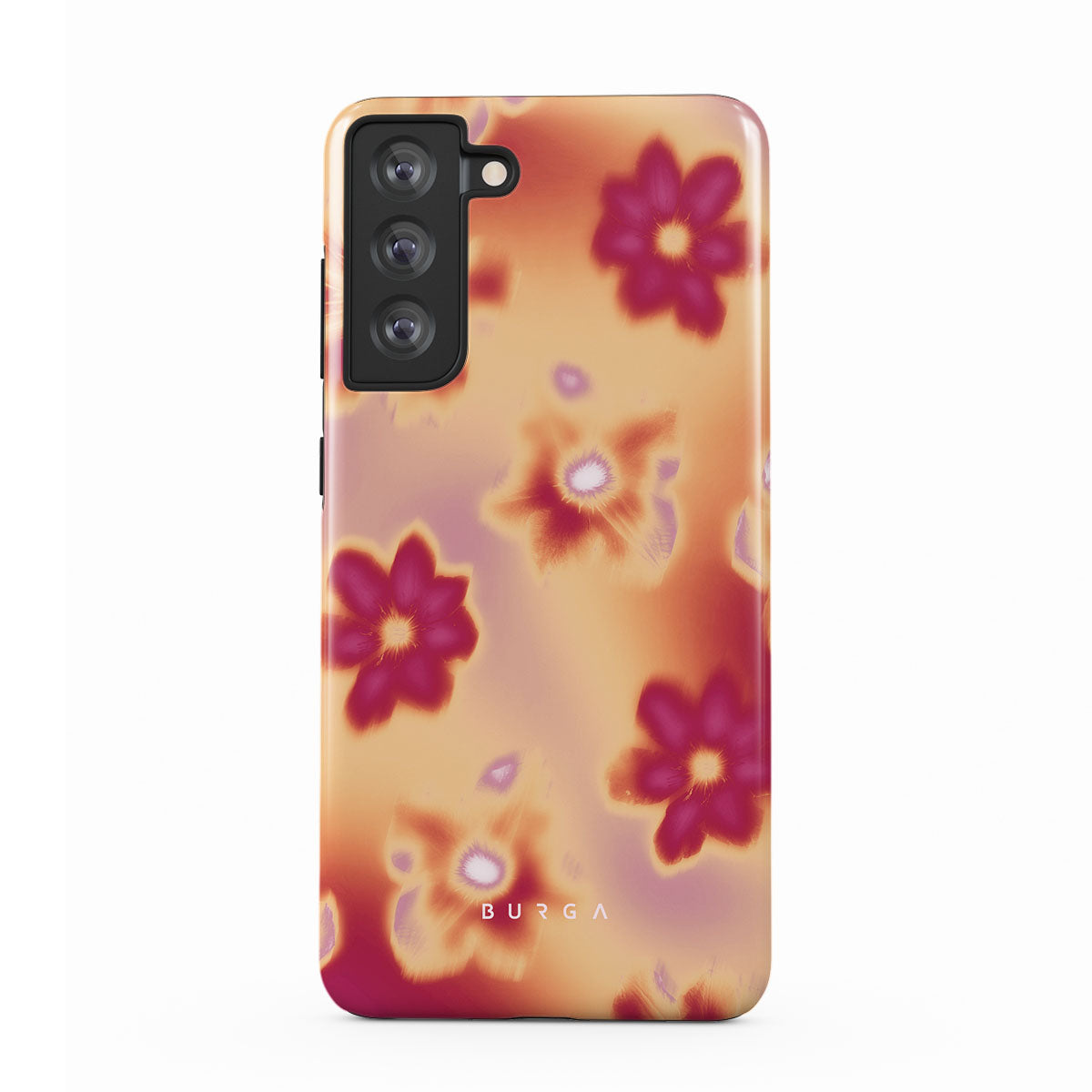 Get lost in the allure of our Divine Samsung Galaxy S21 FE phone case design. Picture blossoms bathed in fiery hues of pink and orange, each seemingly charged with life's raw energy. Set against a canvas that radiates power and warmth, these flowers offer more than just beauty; they resonate with the essence that binds us all.