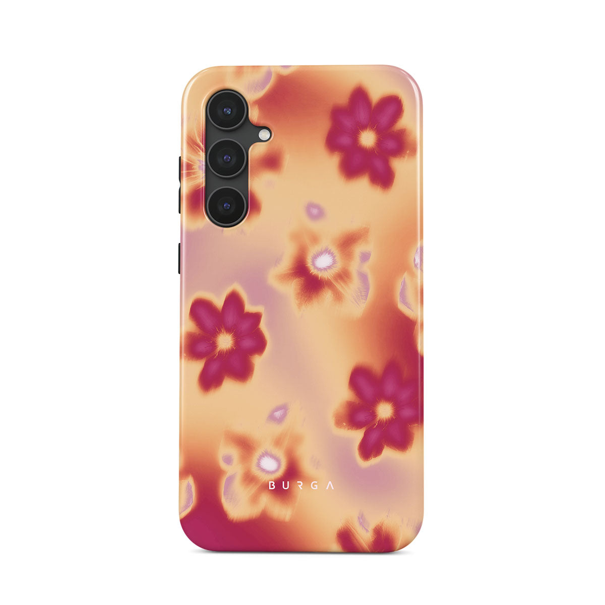 Get lost in the allure of our Divine Samsung Galaxy S23 FE phone case design. Picture blossoms bathed in fiery hues of pink and orange, each seemingly charged with life's raw energy. Set against a canvas that radiates power and warmth, these flowers offer more than just beauty; they resonate with the essence that binds us all.