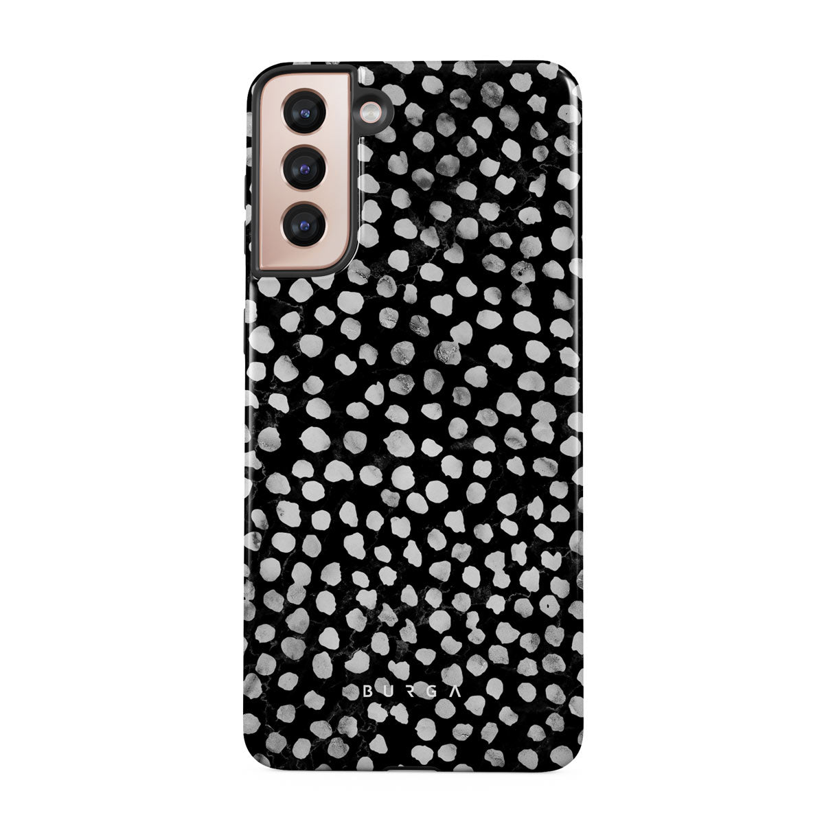 Dark, endless with flickering stars. Keep a part of the night sky in your pocket with Samsung Galaxy S21 Plus phone case cover inspired by the sky above us. The classy dotted pattern found on the case is a must in every accessory lover's collection.