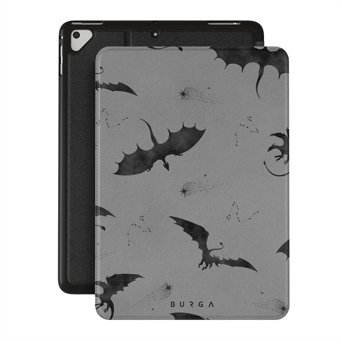 Under the dusk's veil, Draco takes flight, its bats whispering secrets to those who dare. Bold yet elusive, this iPad 9.7 (6th/5th Gen) folio case design invites you to embrace the unknown and let the wings of mystery guide your night—where will they take you?