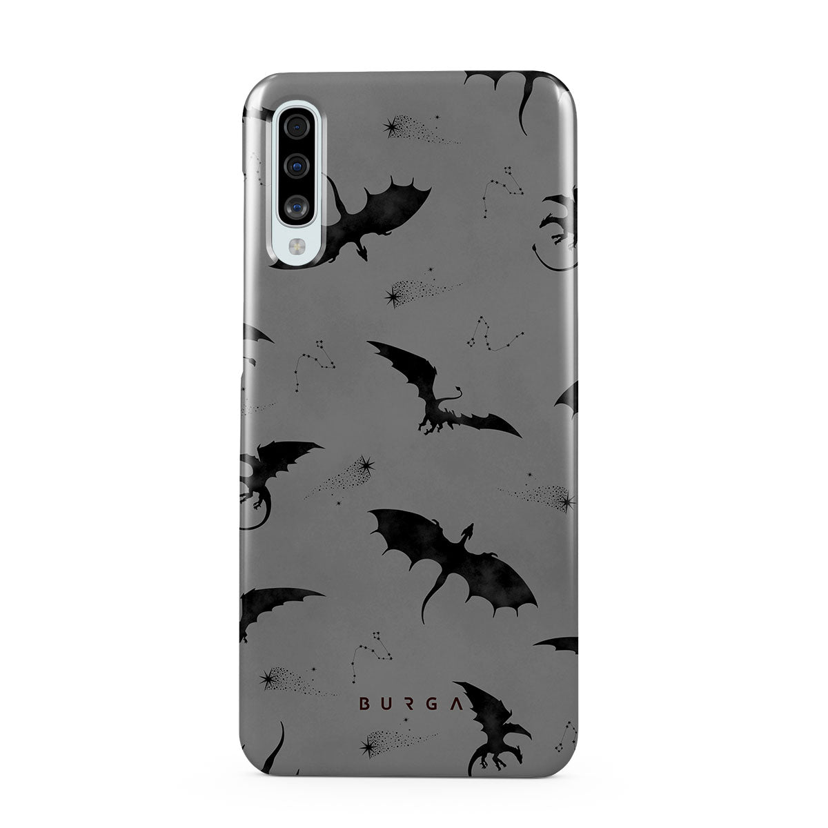 Under the dusk's veil, Draco takes flight, its bats whispering secrets to those who dare. Bold yet elusive, this Samsung Galaxy A50 phone case design invites you to embrace the unknown and let the wings of mystery guide your night—where will they take you?