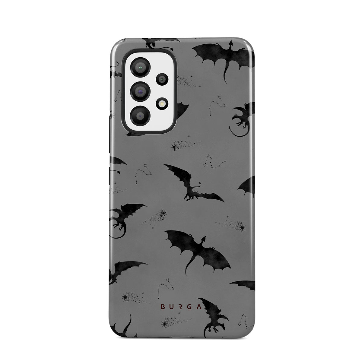 Under the dusk's veil, Draco takes flight, its bats whispering secrets to those who dare. Bold yet elusive, this Samsung Galaxy A53 phone case design invites you to embrace the unknown and let the wings of mystery guide your night—where will they take you?