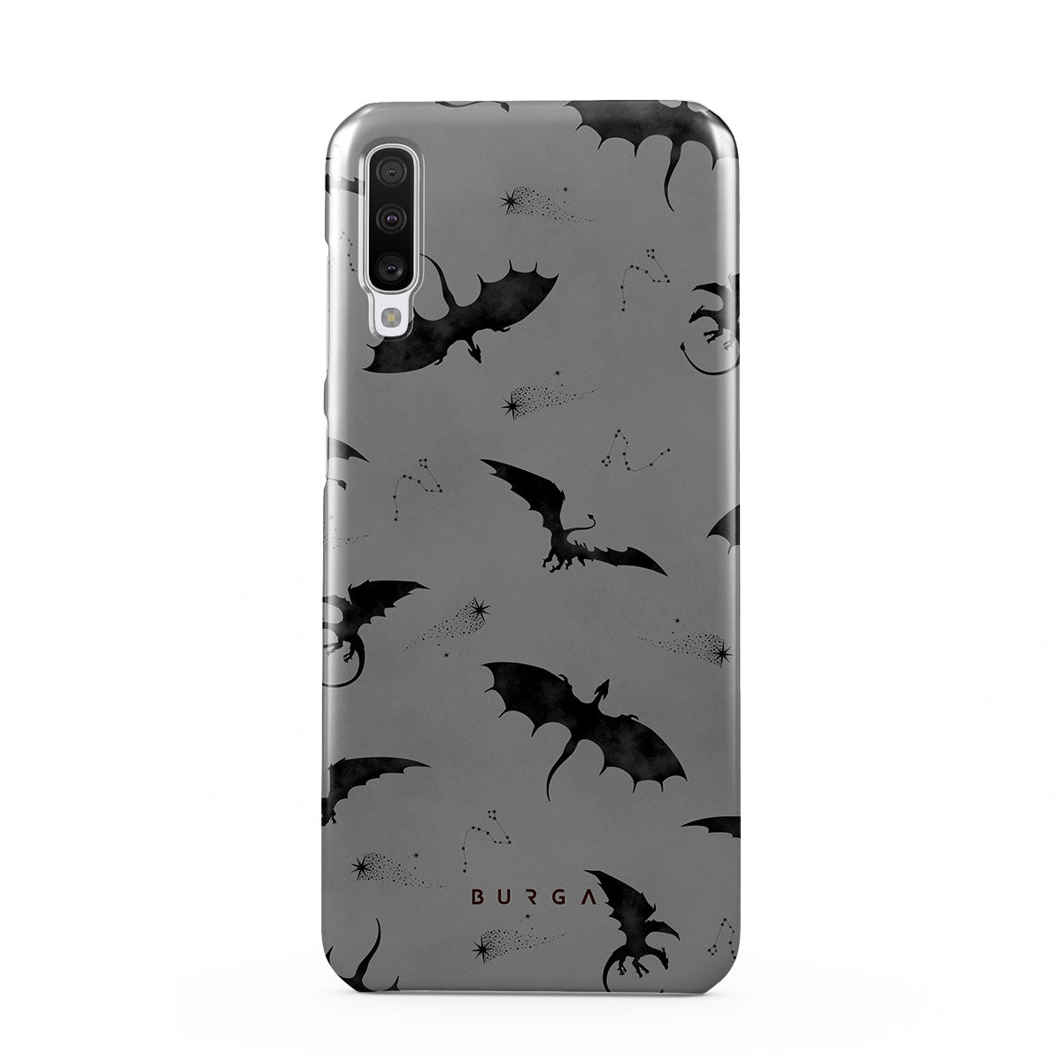 Under the dusk's veil, Draco takes flight, its bats whispering secrets to those who dare. Bold yet elusive, this Samsung Galaxy A70 phone case design invites you to embrace the unknown and let the wings of mystery guide your night—where will they take you?