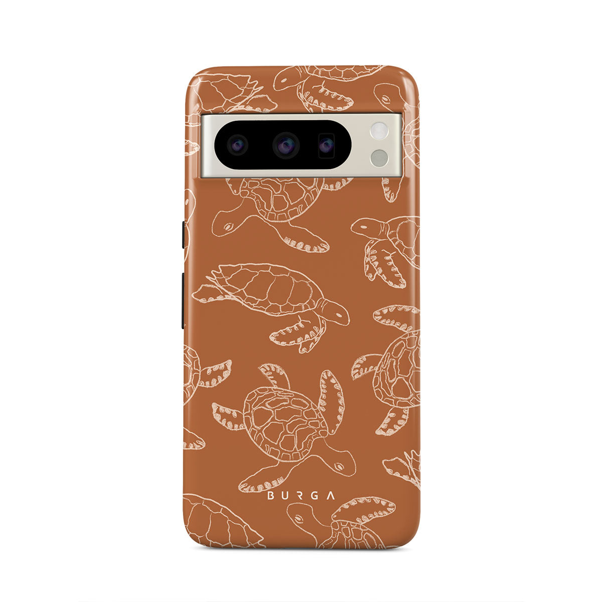 Step into a world of pure bliss and turtle magic with our Earth Shell design. The rich earth tones creating a calming ambiance blend beautifully with the playful turtles floating into adventure. Embark on a thrilling escapade to reconnect with nature with our Earth Shell Google Pixel 8 Pro case.