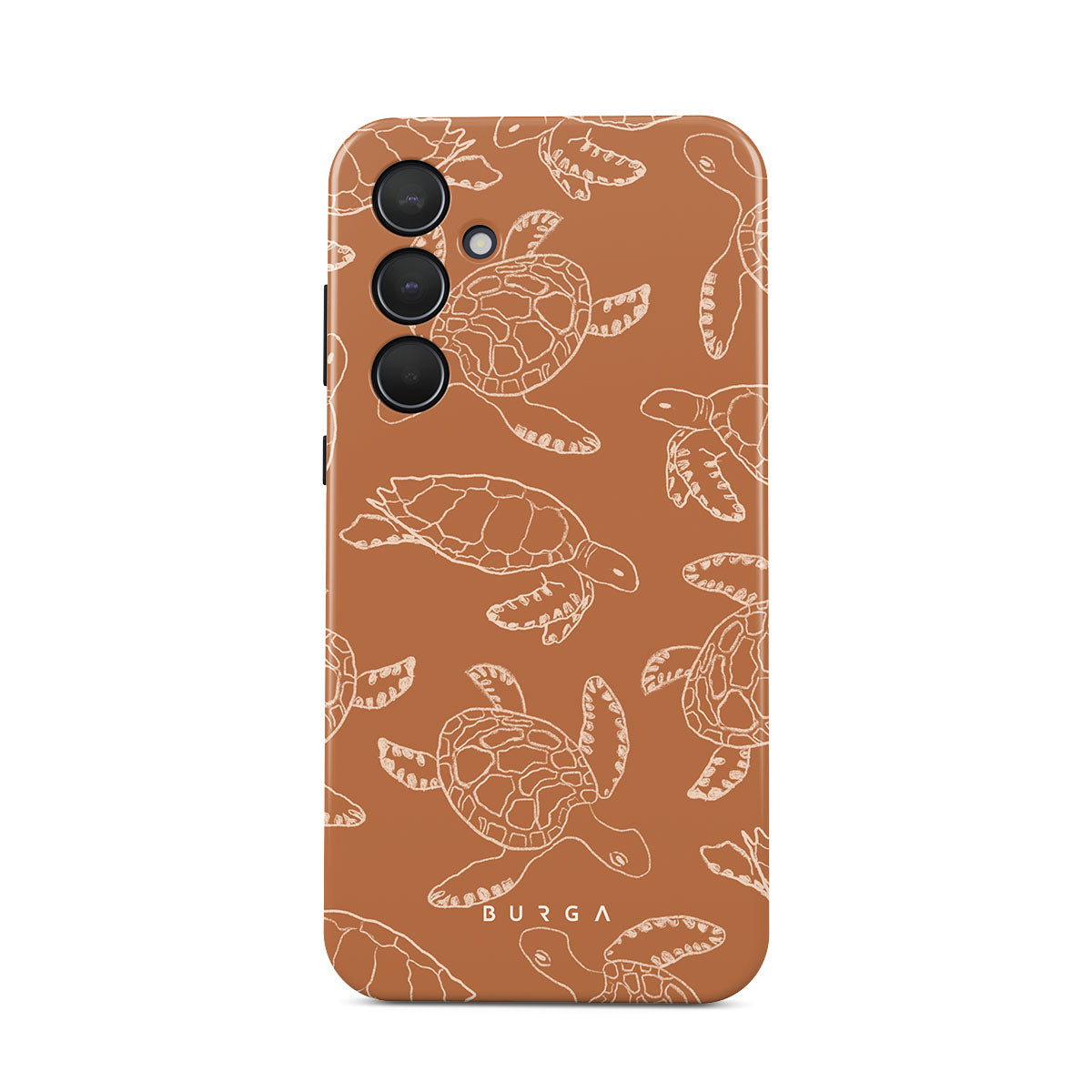 Step into a world of pure bliss and turtle magic with our Earth Shell design. The rich earth tones creating a calming ambiance blend beautifully with the playful turtles floating into adventure. Embark on a thrilling escapade to reconnect with nature with our Earth Shell Samsung Galaxy A35 case.