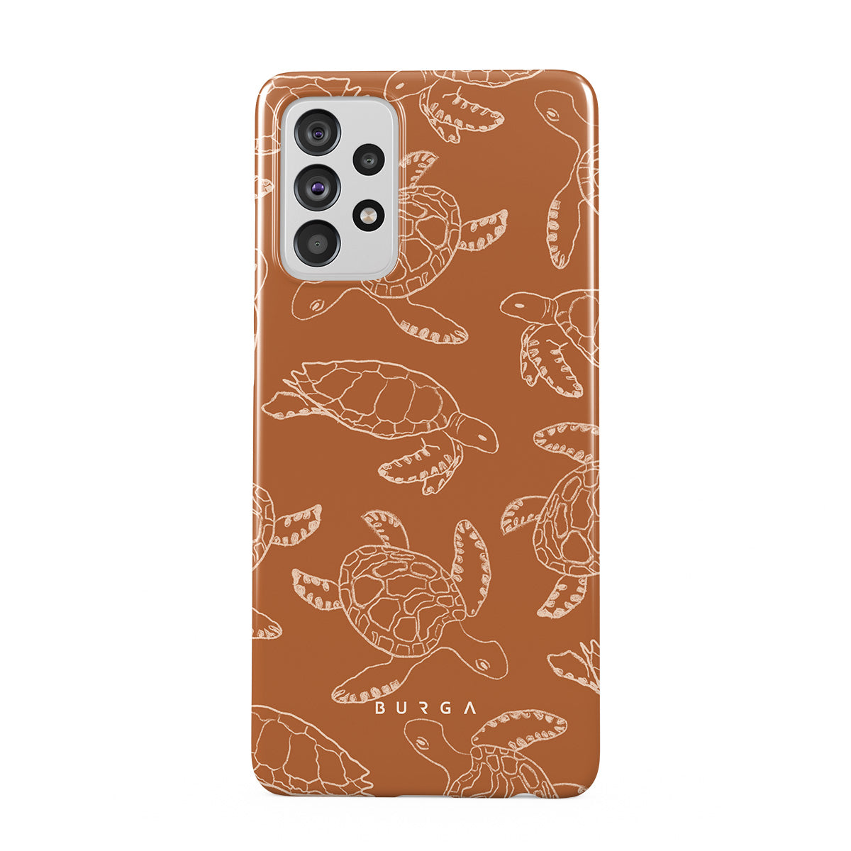 Step into a world of pure bliss and turtle magic with our Earth Shell design. The rich earth tones creating a calming ambiance blend beautifully with the playful turtles floating into adventure. Embark on a thrilling escapade to reconnect with nature with our Earth Shell Samsung Galaxy A72 4G / 5G case.