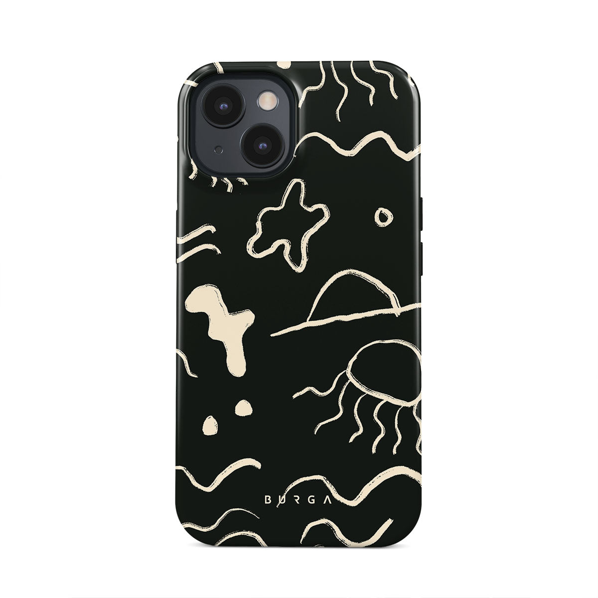 Our Eclipse iPhone 14 Plus design reflects the enigmatic beauty of the ocean during a solar eclipse. The dark hues and bright accents represent how the light dances on the water, while the waves and jellyfish capture the serene yet dynamic nature of the ocean.