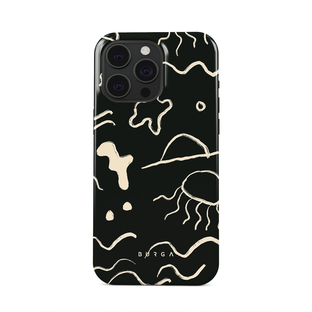 Our Eclipse iPhone 15 Pro design reflects the enigmatic beauty of the ocean during a solar eclipse. The dark hues and bright accents represent how the light dances on the water, while the waves and jellyfish capture the serene yet dynamic nature of the ocean.