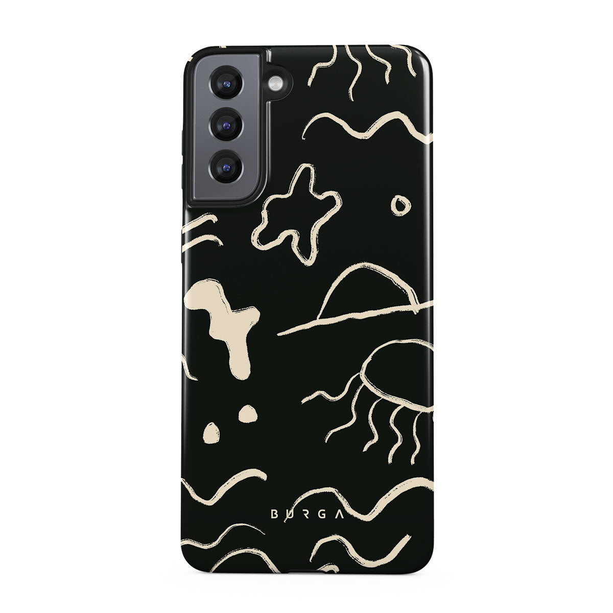 Our Eclipse Samsung Galaxy S21 design reflects the enigmatic beauty of the ocean during a solar eclipse. The dark hues and bright accents represent how the light dances on the water, while the waves and jellyfish capture the serene yet dynamic nature of the ocean.