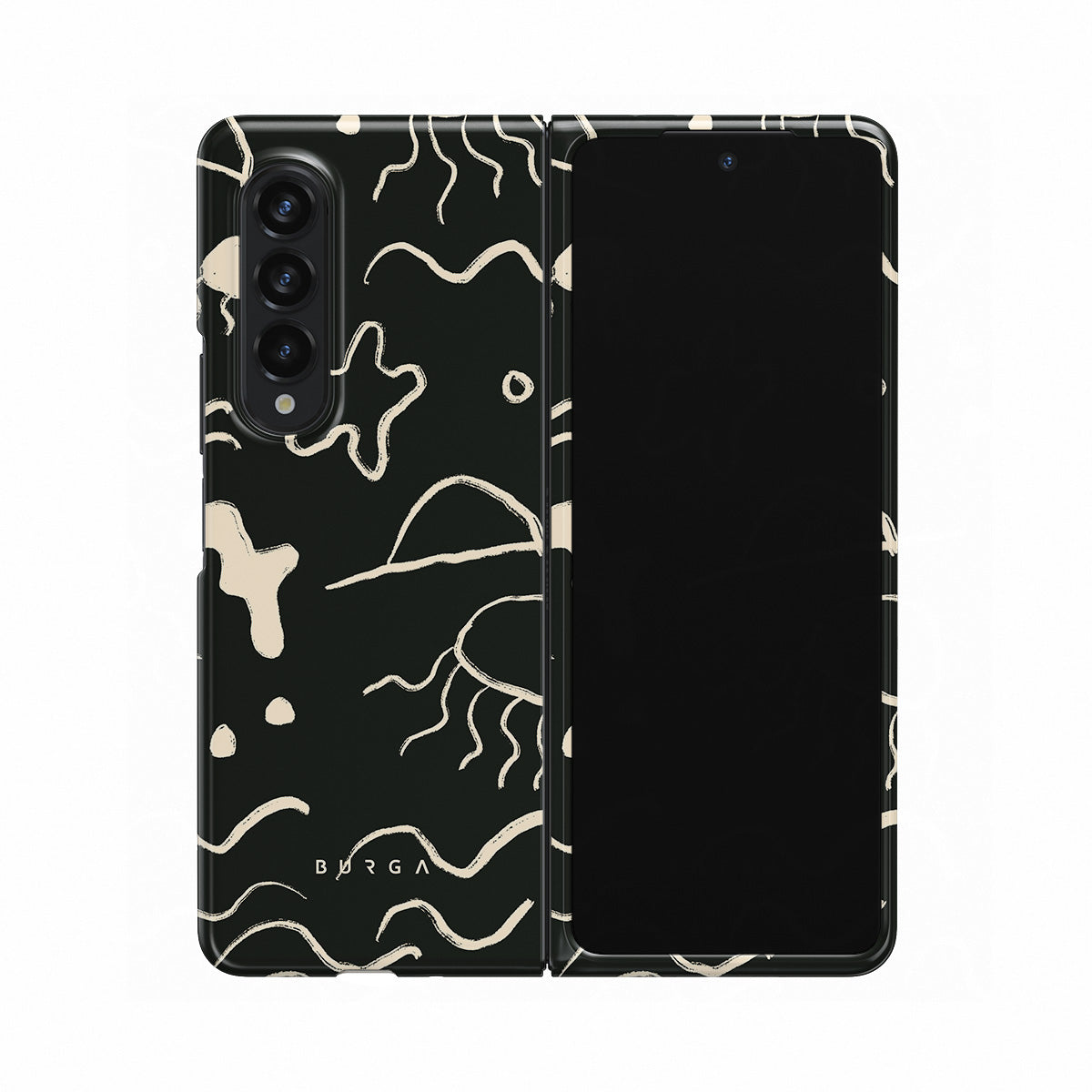 Our Eclipse Samsung Galaxy Z Fold 3 design reflects the enigmatic beauty of the ocean during a solar eclipse. The dark hues and bright accents represent how the light dances on the water, while the waves and jellyfish capture the serene yet dynamic nature of the ocean.
