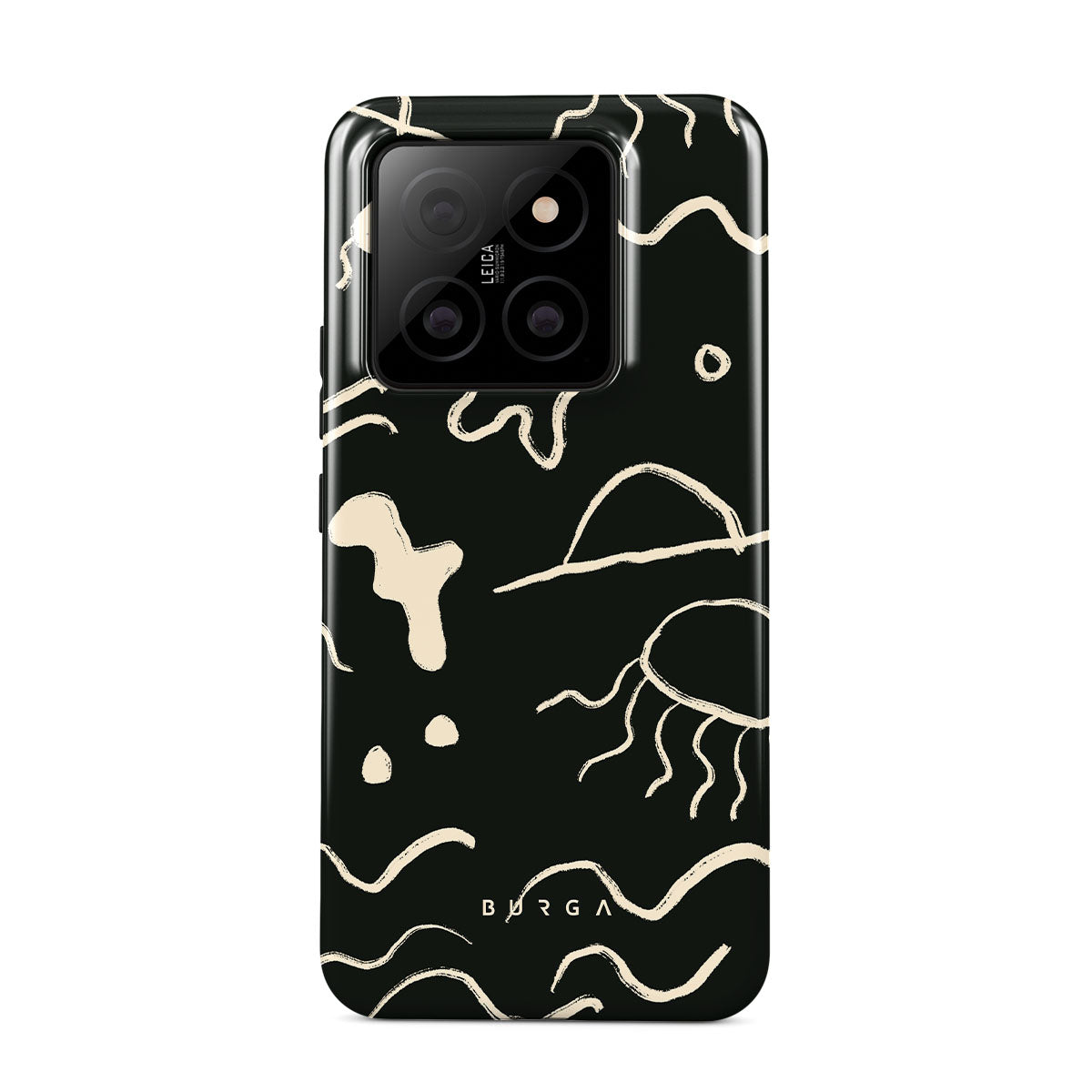 Our Eclipse Xiaomi 14 Pro design reflects the enigmatic beauty of the ocean during a solar eclipse. The dark hues and bright accents represent how the light dances on the water, while the waves and jellyfish capture the serene yet dynamic nature of the ocean.