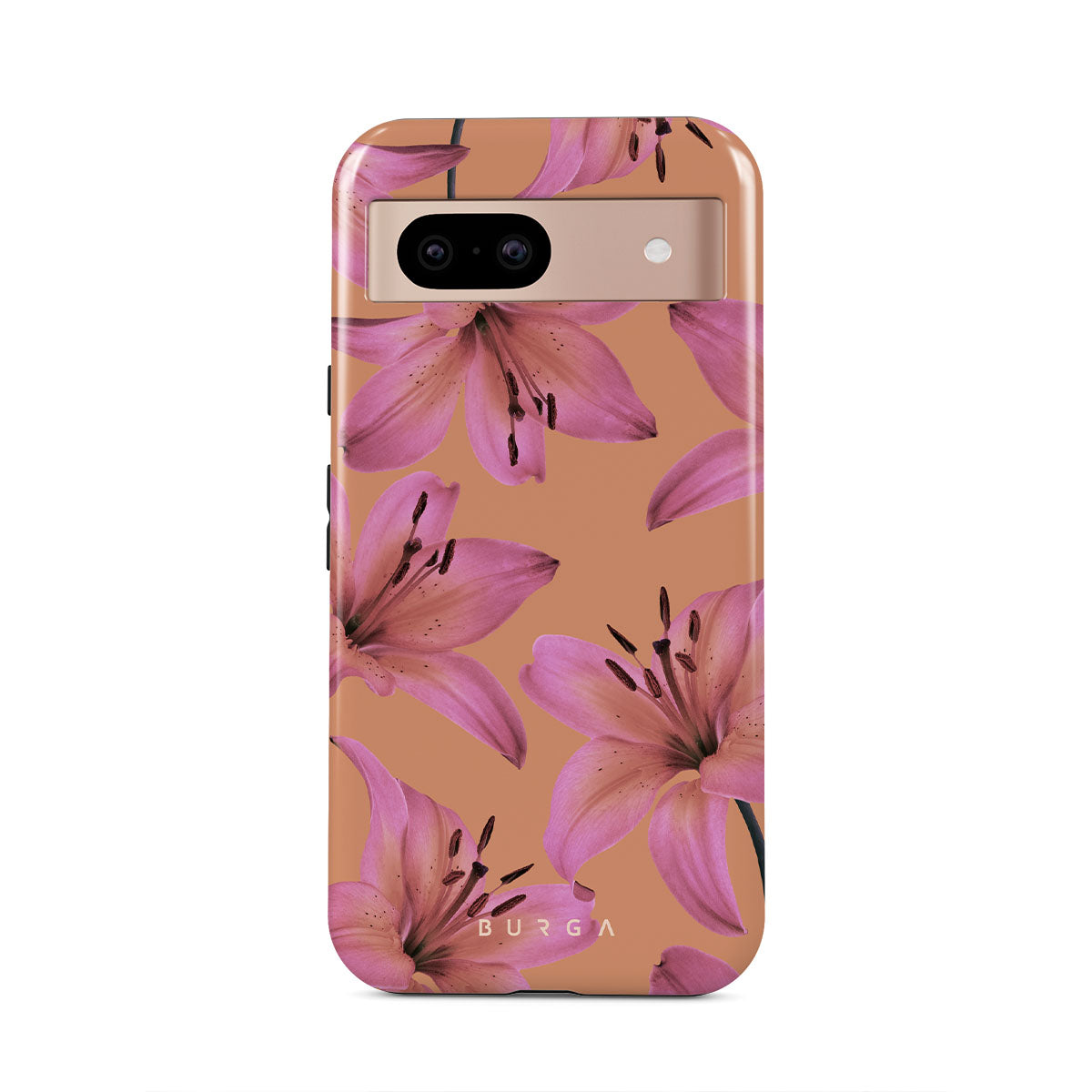 A design inspired by the effortless bloom of lilies, reflecting the beauty of embracing life's spontaneous moments. Like lilies that thrive untamed, this case reminds us to flourish in the face of change. Embodying the magic of life's unpredictable tapestry with our Eden Google Pixel 8a phone case.