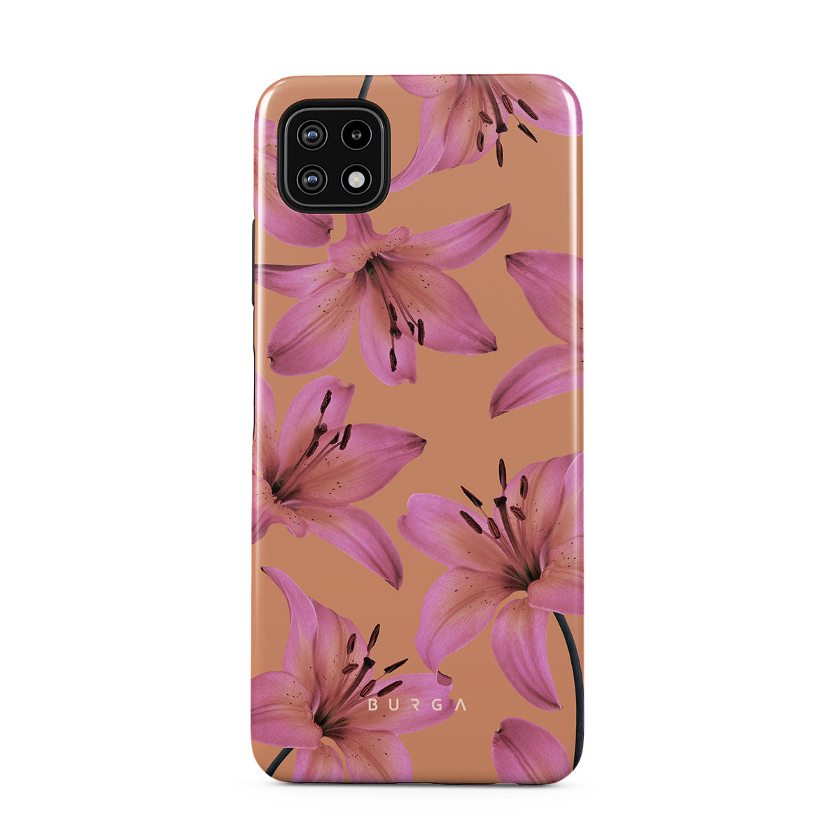 A design inspired by the effortless bloom of lilies, reflecting the beauty of embracing life's spontaneous moments. Like lilies that thrive untamed, this case reminds us to flourish in the face of change. Embodying the magic of life's unpredictable tapestry with our Eden Samsung Galaxy A22 5G phone case.