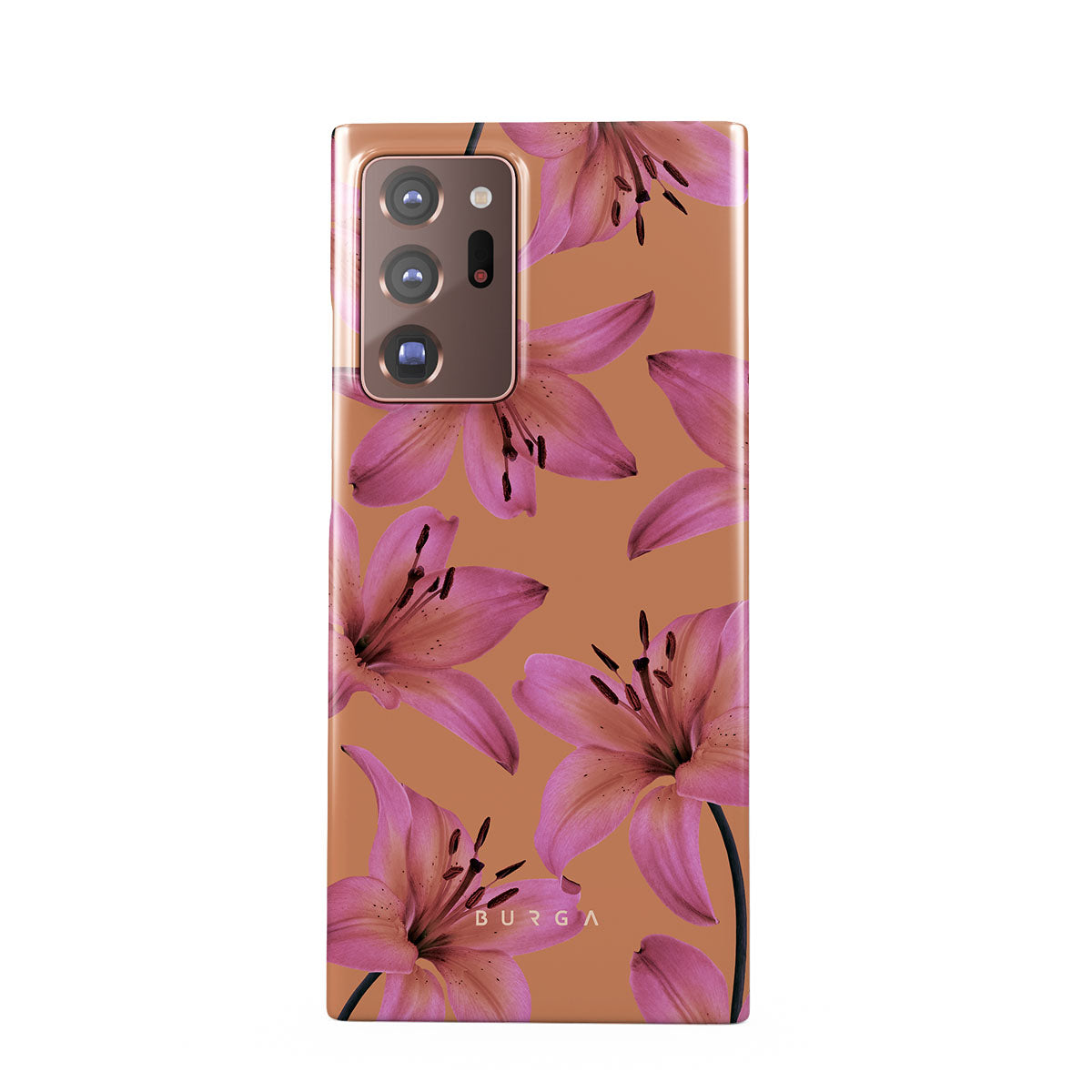 A design inspired by the effortless bloom of lilies, reflecting the beauty of embracing life's spontaneous moments. Like lilies that thrive untamed, this case reminds us to flourish in the face of change. Embodying the magic of life's unpredictable tapestry with our Eden Samsung Galaxy Note 20 Ultra 4G / 5G phone case.