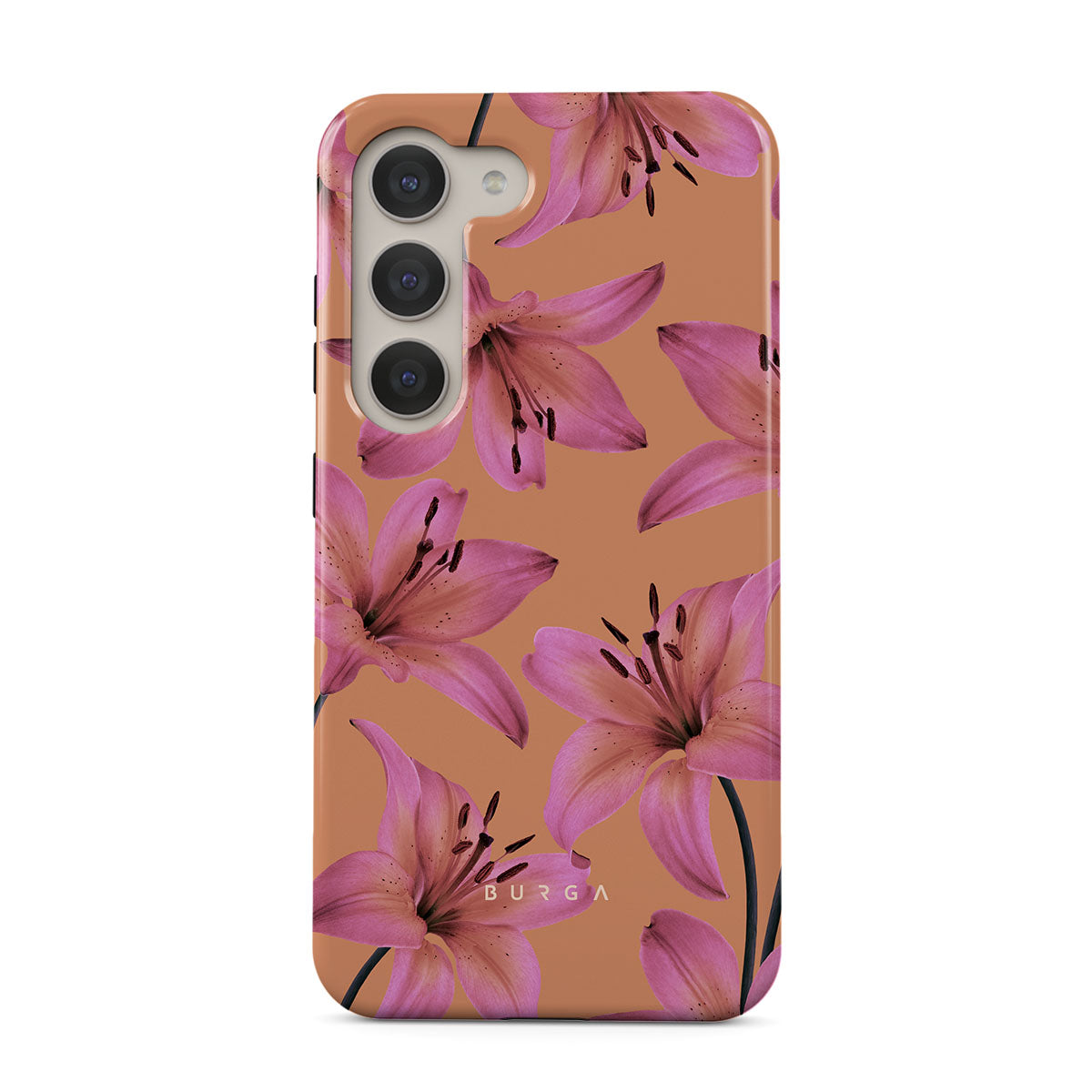 A design inspired by the effortless bloom of lilies, reflecting the beauty of embracing life's spontaneous moments. Like lilies that thrive untamed, this case reminds us to flourish in the face of change. Embodying the magic of life's unpredictable tapestry with our Eden Samsung Galaxy S23 Plus phone case.