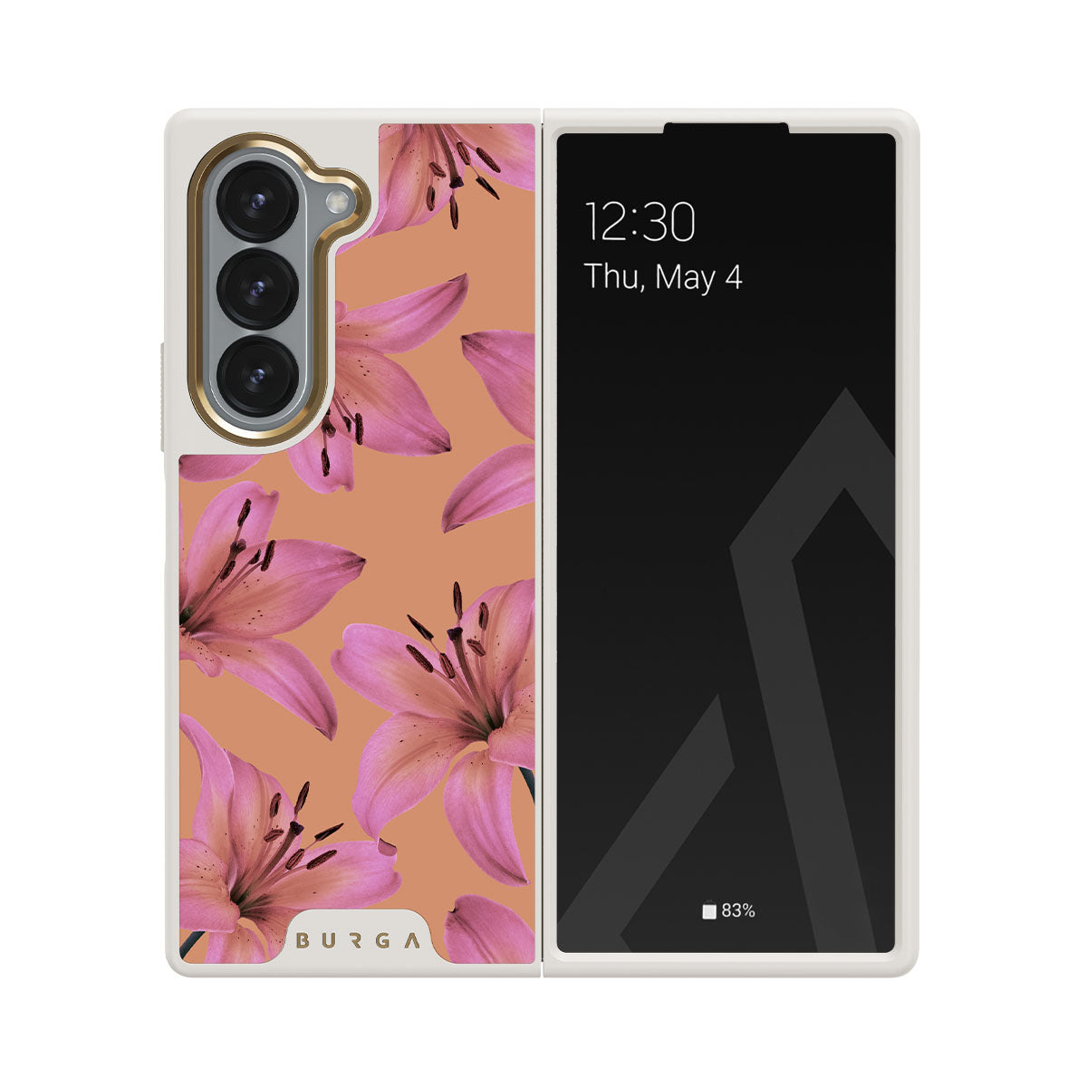 A design inspired by the effortless bloom of lilies, reflecting the beauty of embracing life's spontaneous moments. Like lilies that thrive untamed, this case reminds us to flourish in the face of change. Embodying the magic of life's unpredictable tapestry with our Eden Samsung Galaxy Z Fold 6 phone case.