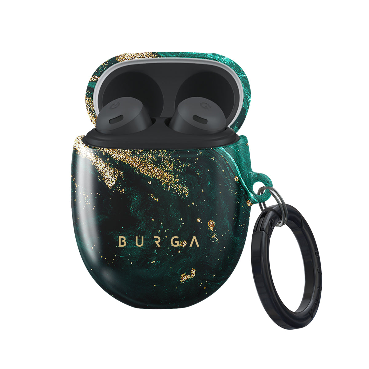 Elegant shades of green with golden sparkle create an Google Pixel Buds Pro case cover that radiates elegance and sophistication while protecting the case from any possible damage. Our case fits perfectly snug around Google Pixel Buds Pro . “Like a glove!” one might say. And it won’t disrupt the wireless charging capabilities of the newer model. There’s even an LED light indicator to prove it (don’t worry, wired charging still works, too). When fitted, the BURGA case will protect the delicate Google Pixel Buds Pro case beneath it from scratches, bumps, and drops while remaining scratch-free itself. Our signature design pattern prints are High Quality, and will never peel or fade away- thanks to our unique printing technology. And finally, a handy carabiner is there to make your life easier and more convenient: just snap it around your keys or belt loop and tackle the day head-on. Your music is right there by your side when you need it.