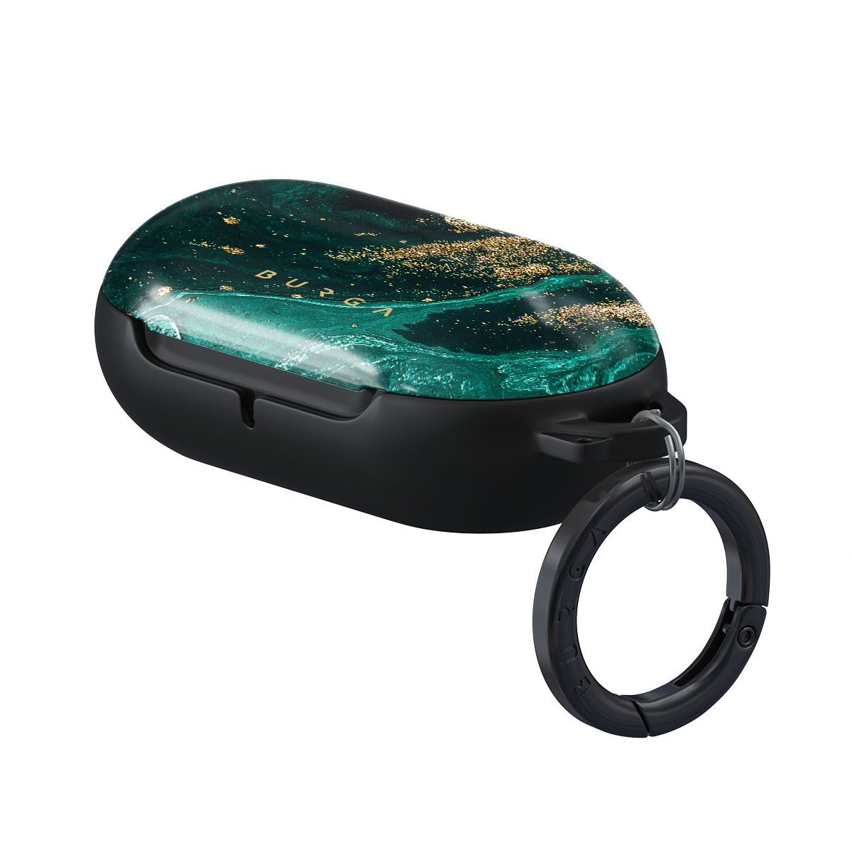 Elegant shades of green with golden sparkle create an Samsung Galaxy Buds Plus case cover that radiates elegance and sophistication while protecting the case from any possible damage. Our case fits perfectly snug around Samsung Galaxy Buds Plus . “Like a glove!” one might say. And it won’t disrupt the wireless charging capabilities of the newer model. There’s even an LED light indicator to prove it (don’t worry, wired charging still works, too). When fitted, the BURGA case will protect the delicate Samsung Galaxy Buds Plus case beneath it from scratches, bumps, and drops while remaining scratch-free itself. Our signature design pattern prints are High Quality, and will never peel or fade away- thanks to our unique printing technology. And finally, a handy carabiner is there to make your life easier and more convenient: just snap it around your keys or belt loop and tackle the day head-on. Your music is right there by your side when you need it.
