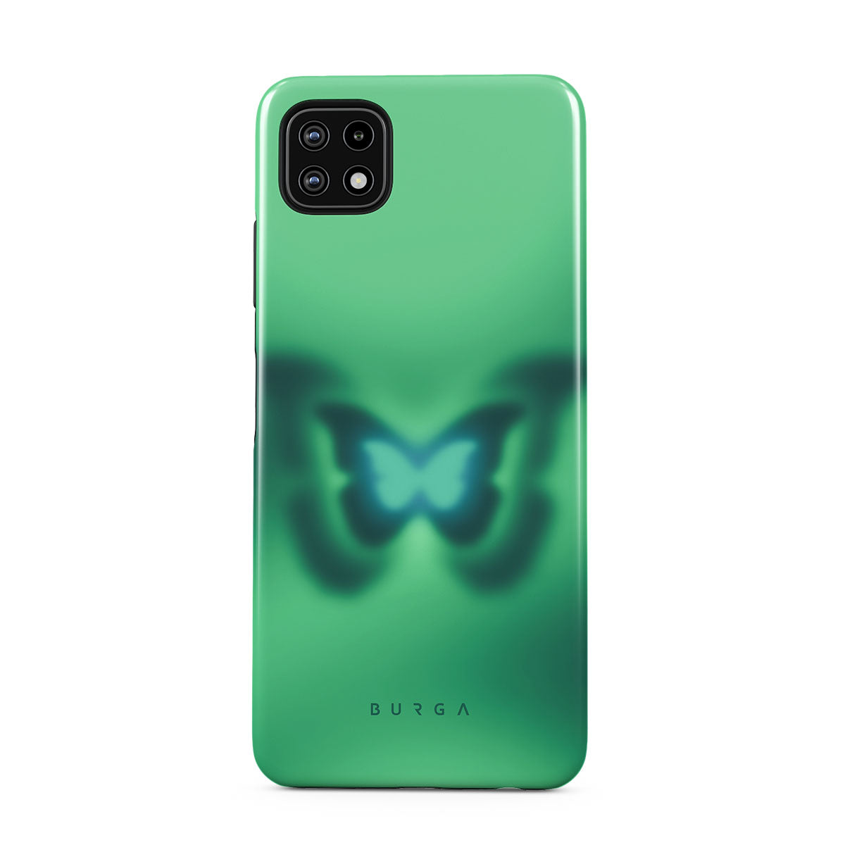 Immerse yourself in the captivating essence of Energy. This radiant Samsung Galaxy A22 5G phone case design, featuring a butterfly against a striking green background, symbolizes transformation and the excitement of new adventures. Its dynamic allure complements every OOTD.