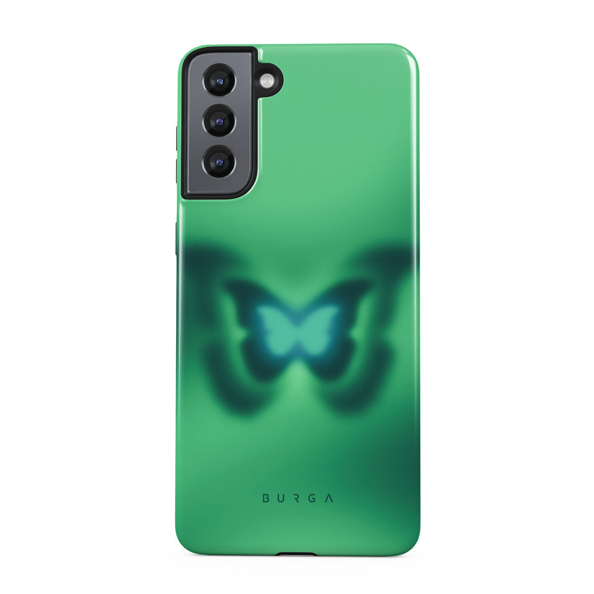 Immerse yourself in the captivating essence of Energy. This radiant Samsung Galaxy S21 phone case design, featuring a butterfly against a striking green background, symbolizes transformation and the excitement of new adventures. Its dynamic allure complements every OOTD.