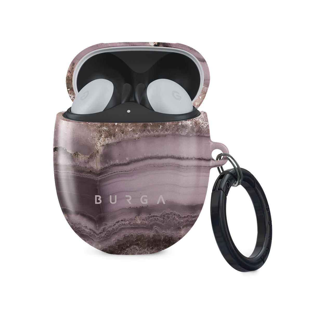 Our geode-inspired Google Pixel Buds 2 case cover in a soft mauve shade is ready to take on a fashion world. Pretty and protective, our cover will add a touch of luxury to your fashion game while keeping the case safe from falls and dents that follow them. Our case fits perfectly snug around Google Pixel Buds 2 . “Like a glove!” one might say. And it won’t disrupt the wireless charging capabilities of the newer model. There’s even an LED light indicator to prove it (don’t worry, wired charging still works, too). When fitted, the BURGA case will protect the delicate Google Pixel Buds 2 case beneath it from scratches, bumps, and drops while remaining scratch-free itself. Our signature design pattern prints are High Quality, and will never peel or fade away- thanks to our unique printing technology. And finally, a handy carabiner is there to make your life easier and more convenient: just snap it around your keys or belt loop and tackle the day head-on. Your music is right there by your side when you need it.