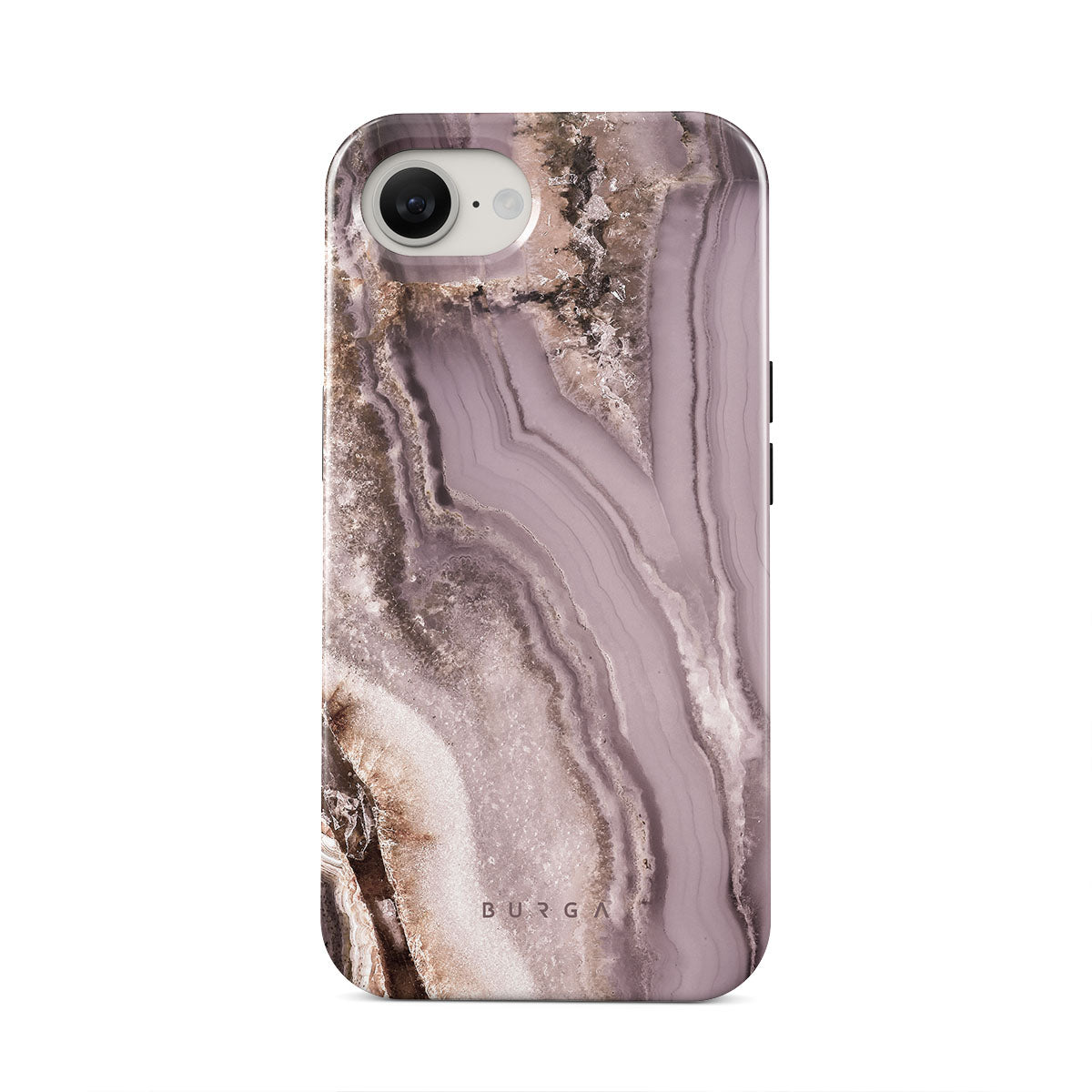 Make a fashion statement with iPhone 16e phone case that reminds of a geode in the softest mauve shade. A phone case that is both pretty and protective is a best friend of a fashion lover.