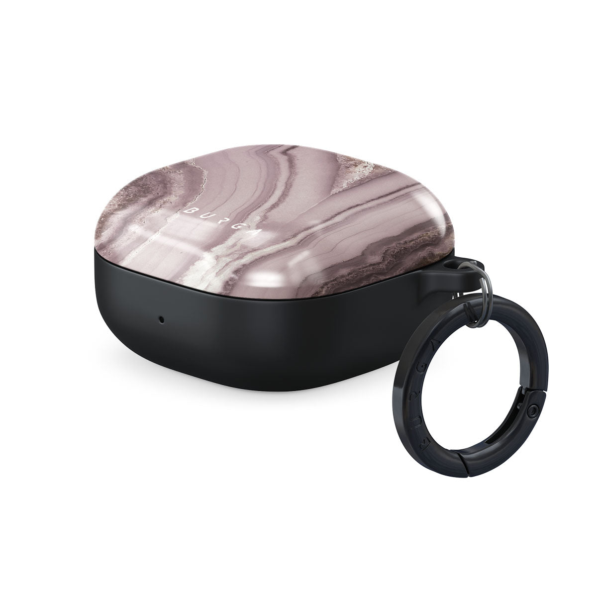 Our geode-inspired Samsung Galaxy Buds Pro 2 Headphones case cover in a soft mauve shade is ready to take on a fashion world. Pretty and protective, our cover will add a touch of luxury to your fashion game while keeping the case safe from falls and dents that follow them. Our case fits perfectly snug around Samsung Galaxy Buds Pro 2 Headphones. “Like a glove!” one might say. And it won’t disrupt the wireless charging capabilities of the newer model. There’s even an LED light indicator to prove it (don’t worry, wired charging still works, too). When fitted, the BURGA case will protect the delicate Samsung Galaxy Buds Pro 2 Headphones case beneath it from scratches, bumps, and drops while remaining scratch-free itself. Our signature design pattern prints are High Quality, and will never peel or fade away- thanks to our unique printing technology. And finally, a handy carabiner is there to make your life easier and more convenient: just snap it around your keys or belt loop and tackle the day head-on. Your music is right there by your side when you need it.