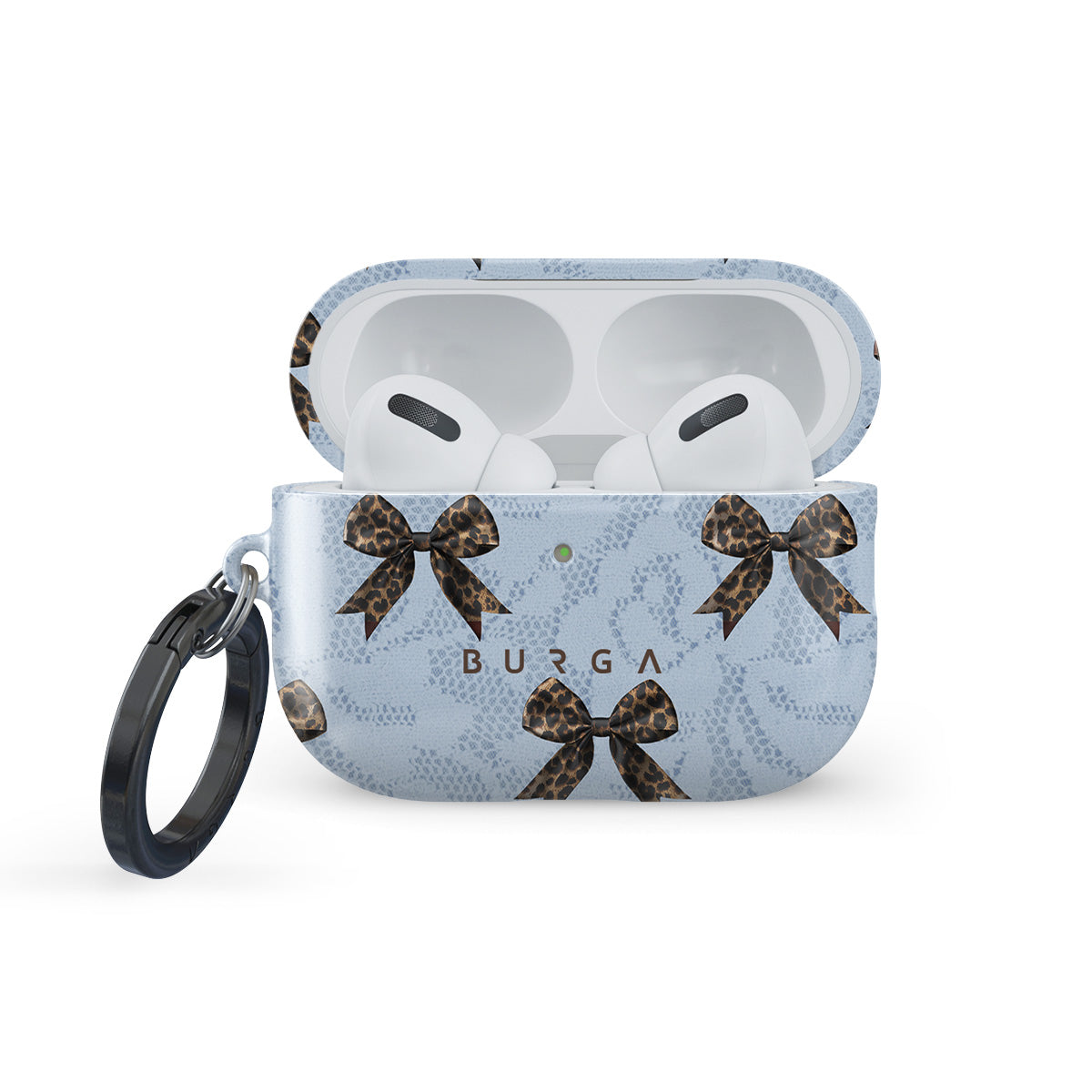 For those who command attention with subtle elegance, our Fashionista AirPods Pro 3 case cover design is your go-to. A soft blue background, accented by dark grey bows and subtle lace patterns, exudes polished, effortless style. It's quiet confidence with a hint of charm.