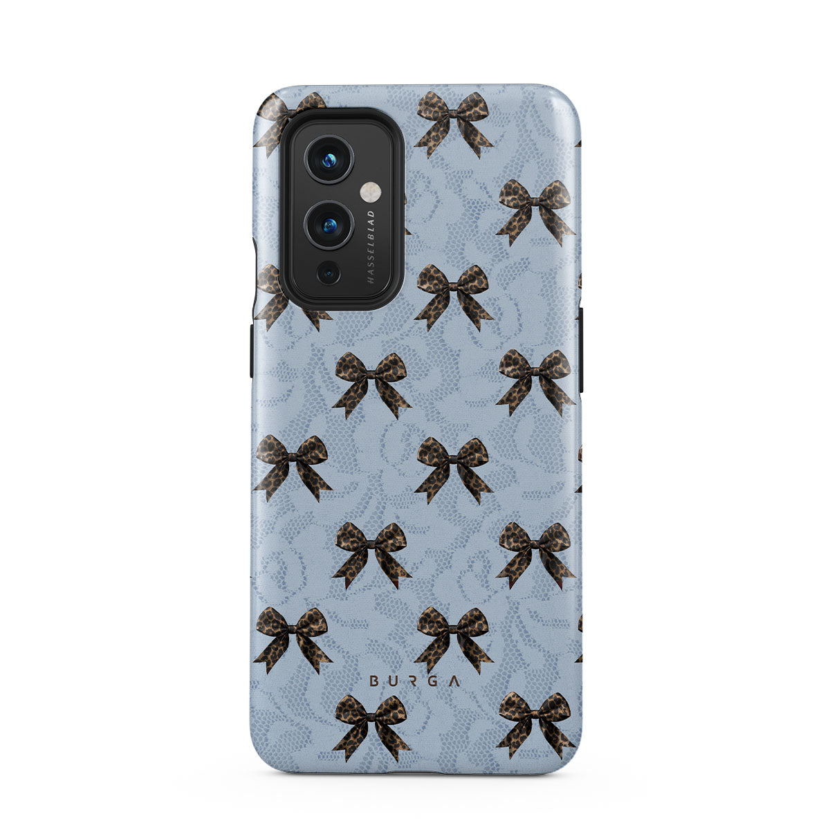 For those who command attention with subtle elegance, our Fashionista OnePlus 9 phone case design is your go-to. A soft blue background, accented by dark grey bows and subtle lace patterns, exudes polished, effortless style. It's quiet confidence with a hint of charm.