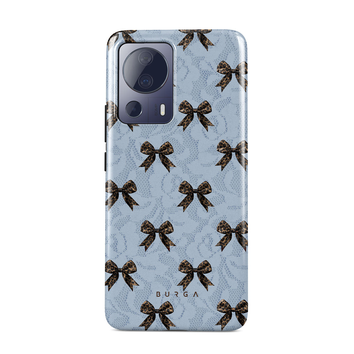 For those who command attention with subtle elegance, our Fashionista Xiaomi 13 Lite phone case design is your go-to. A soft blue background, accented by dark grey bows and subtle lace patterns, exudes polished, effortless style. It's quiet confidence with a hint of charm.