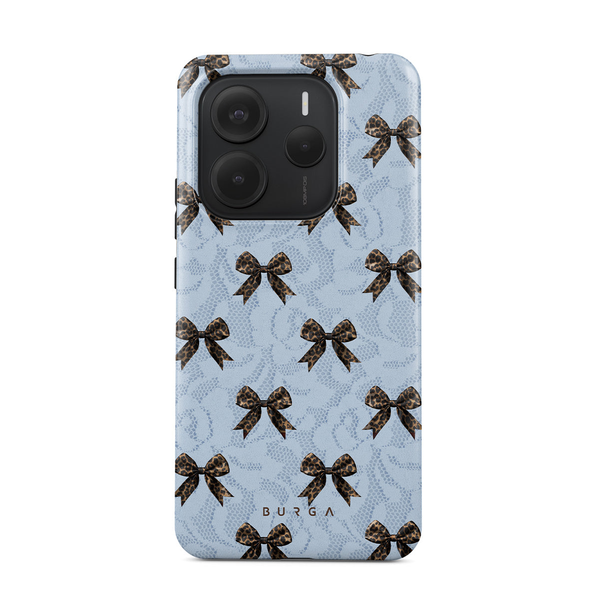 For those who command attention with subtle elegance, our Fashionista Xiaomi Redmi Note 14 5G phone case design is your go-to. A soft blue background, accented by dark grey bows and subtle lace patterns, exudes polished, effortless style. It's quiet confidence with a hint of charm.